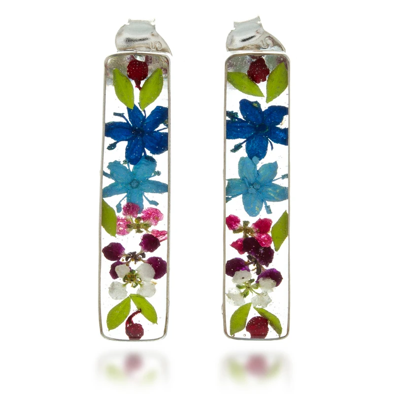 Like windows into a perpetual spring, these rectangular drop earrings framed in sterling silver display an exquisite collection of real flowers and leaves, forever preserved at their peak through crystalline resin. Mexico's Del Toro Family's masterful technique transforms these delicate botanical elements into a wearable garden that brings natural vibrancy to any outfit.