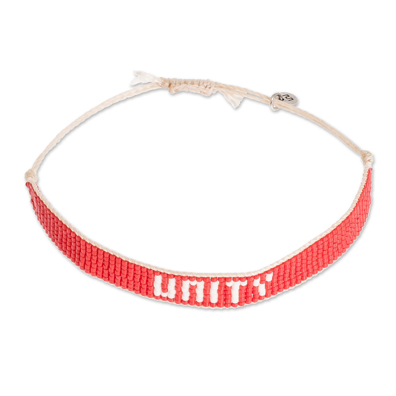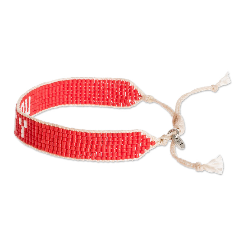 Backed by our 100% Happiness GuaranteeWear this out on the street to show your support! This bracelet is handwoven with fine red and white glass beads by the Wakami cooperative of the city of Guatemala, which works to help rural artisans get their products to market.