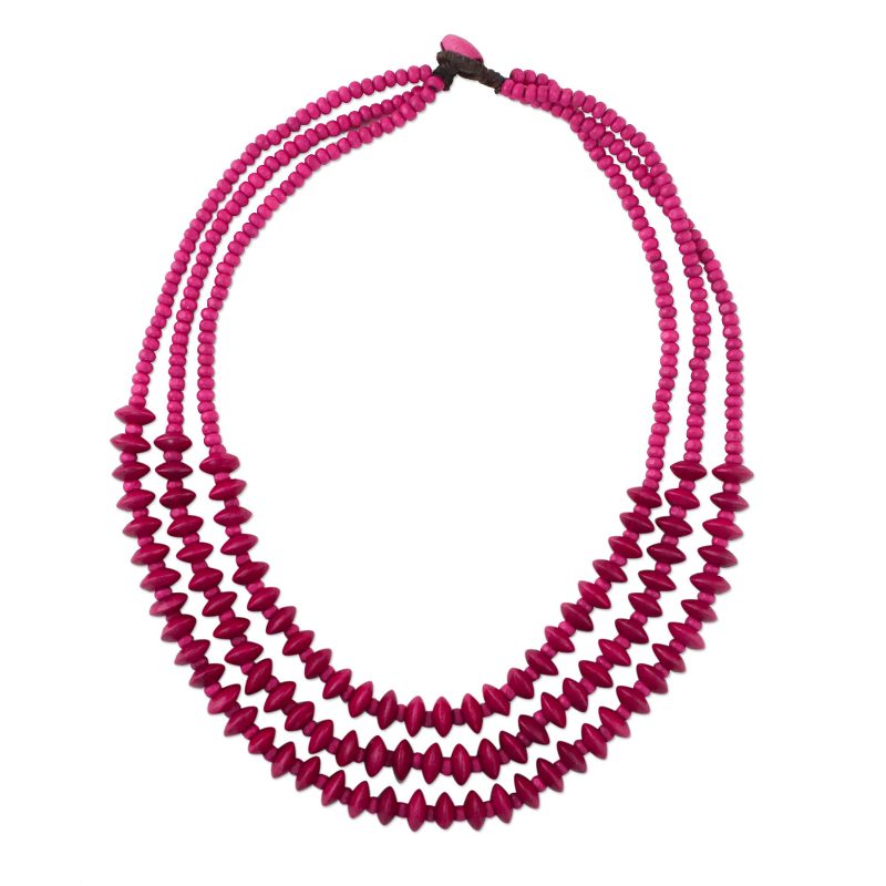 Enjoy the tropical vibes of this bright tri-strand necklace from Thailand. Artisan Sumalee Nawakul crafts the necklace using beads made of littleleaf boxwood in a brilliant shade of ruby.