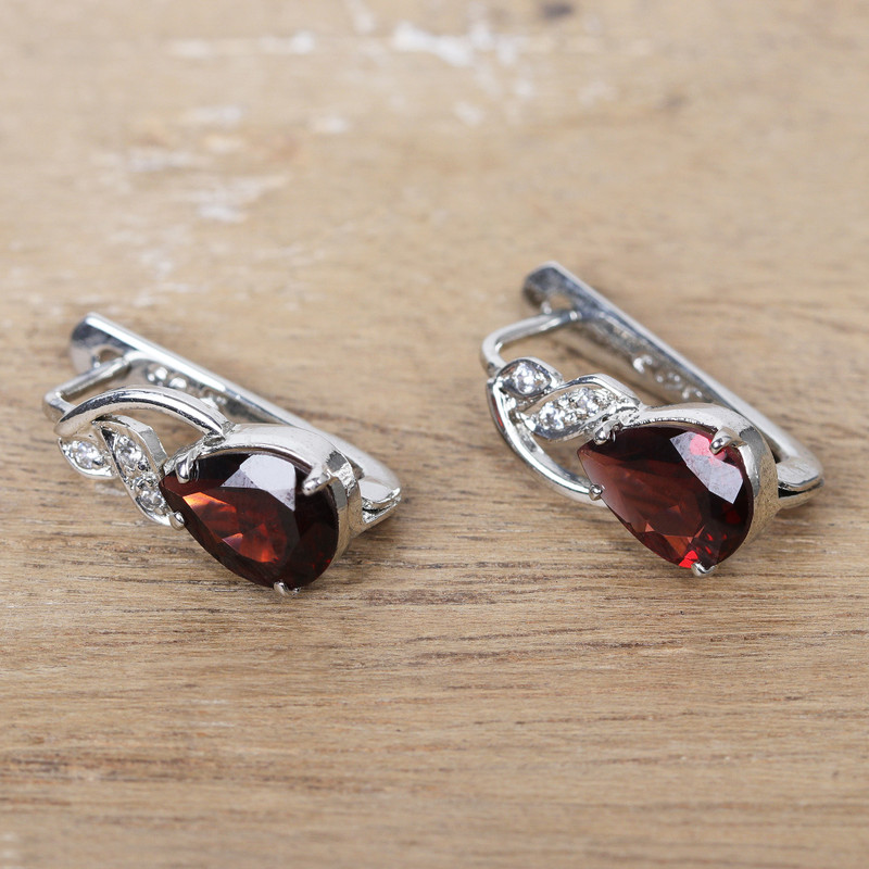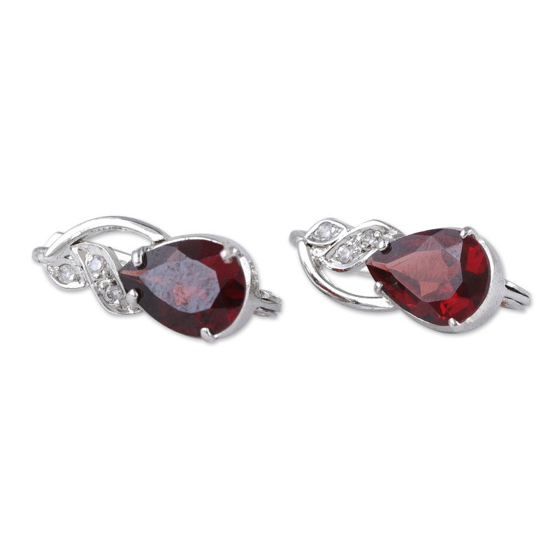 Skilled Indian artisans harness their artistry to fashion these captivating drop earrings that ooze a mesmerizing glow. They work with rhodium-plated sterling silver, infusing the earrings with a touch of allure and elegance. Petite cubic zirconia gems twinkle above gorgeous garnet gemstones, casting a fascinating spell. This sleek design presented by Alok Jain is the epitome of sophistication and a great way to bring a touch of color to your look.