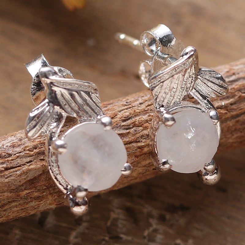 One and a half carats of natural rainbow moonstones are framed by gleaming leaves in these stud earrings from India's Alok Jain. Crafted with glowing rhodium-plated sterling silver, these earrings are an elegant addition to any ensemble as they are crowned with an ethereal nature-themed touch.