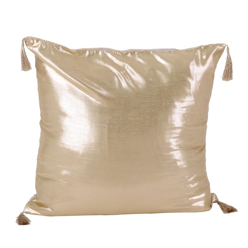 Backed by our 100% Happiness GuaranteeMake your lounging more luxurious with this pair of jute cushion covers. Designed by Asha Prabha, these two covers feature a golden rose print on a gold lamé on one side and golden tassels. Made with jute fabric and gold foil, these cushion covers feature a zipper closure to dress up your favorite cushions with a touch of metallic sparkle.