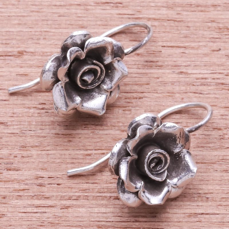 Delicate roses blossom as charming earrings to bring a floral accent to your wardrobe. From Pakaon Sojintarit, they are handcrafted of 950 silver by Karen hill tribe artisans.