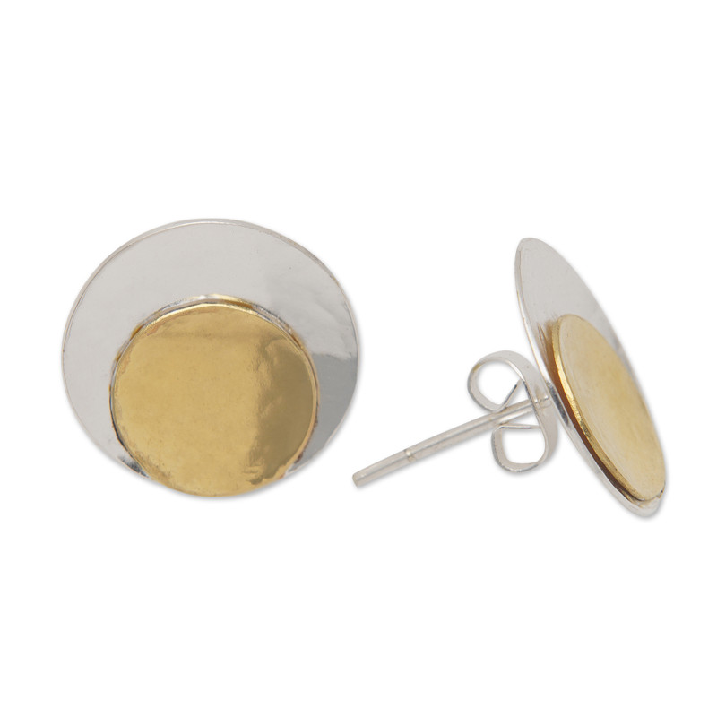 You can find our gold-accented button earrings 'Paradise Nimbus' by Nyoman Nartawan in jewelry categories such as Modern Earrings, Geometric Earrings, No Stone Earrings, Silver Earrings and Sterling Silver Earrings. Enjoy exploring these sections for other Novica treasures.