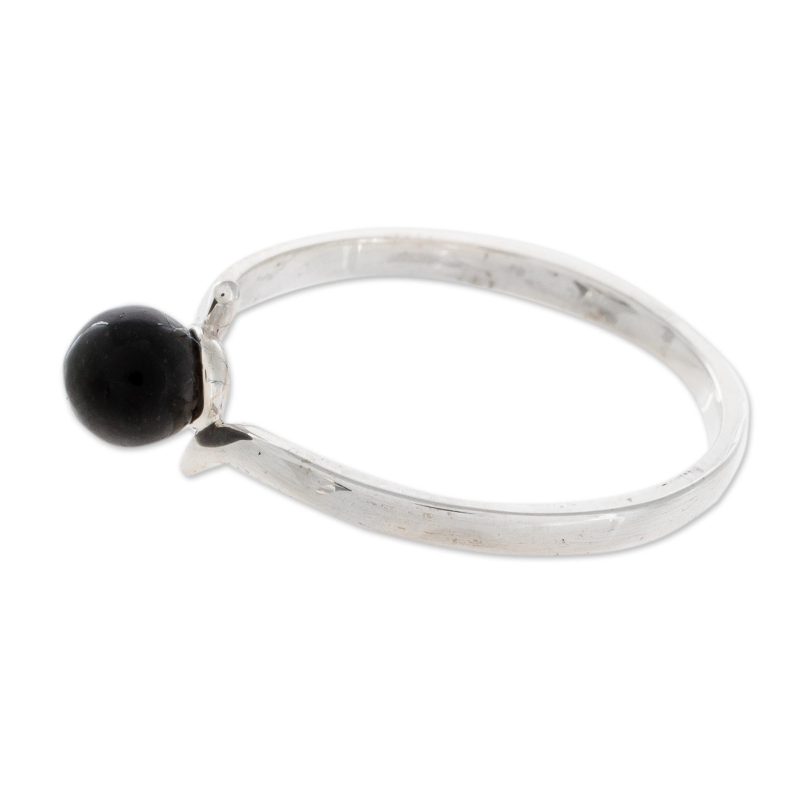 Cradled by sterling silver, an orb of black jade centers this Guatemalan single-stone ring. Nicte Migliozzi designs this ring, which circles the finger with a simple sterling band.
