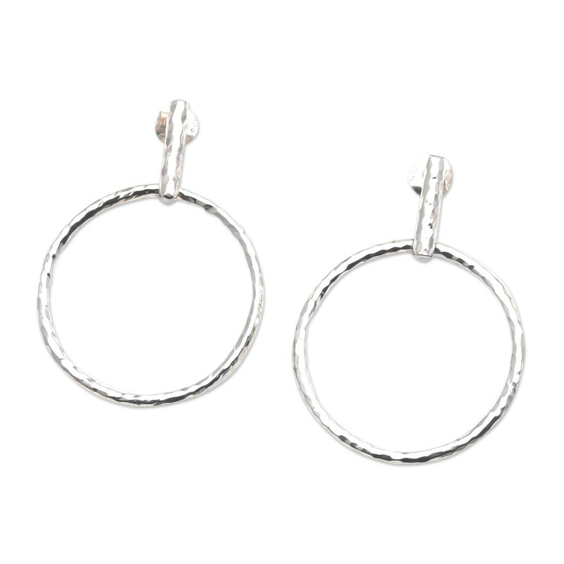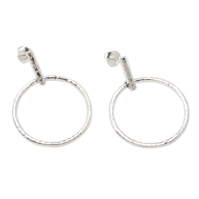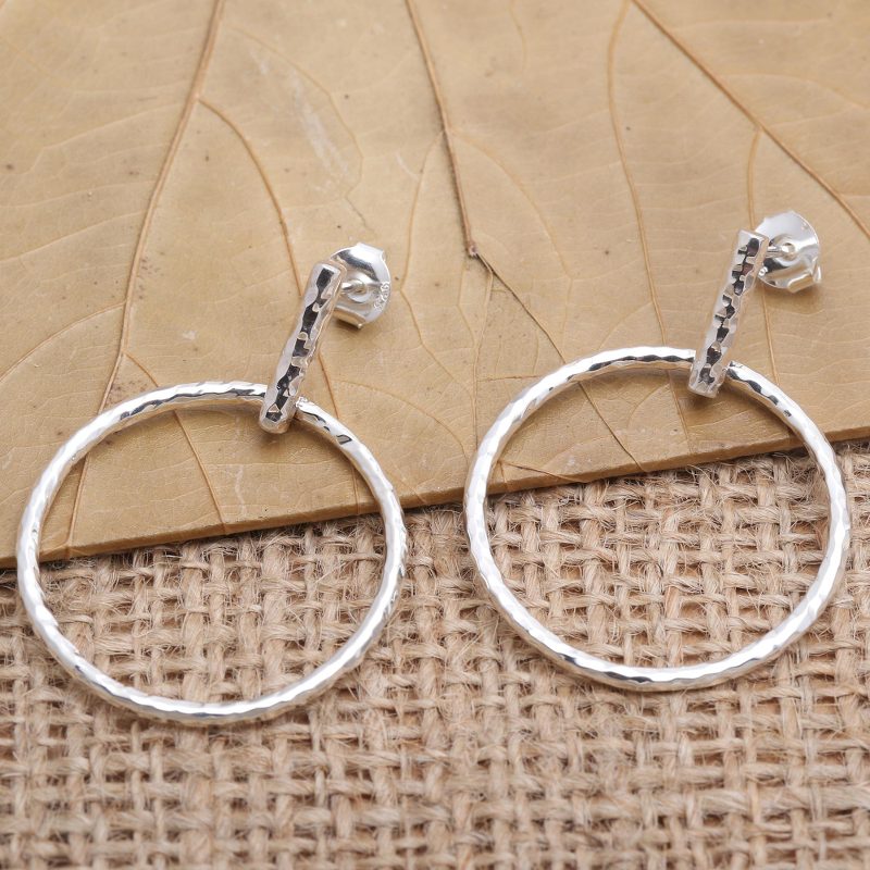 Backed by our 100% Happiness GuaranteeA beautiful hammered finish adds an intriguing texture to Nyoman Ariawan's minimalist earrings. The Balinese artisan starts by hand crafting a simple hoop from polished sterling silver, using a hammered finish and post clasps to add subtle charm.
