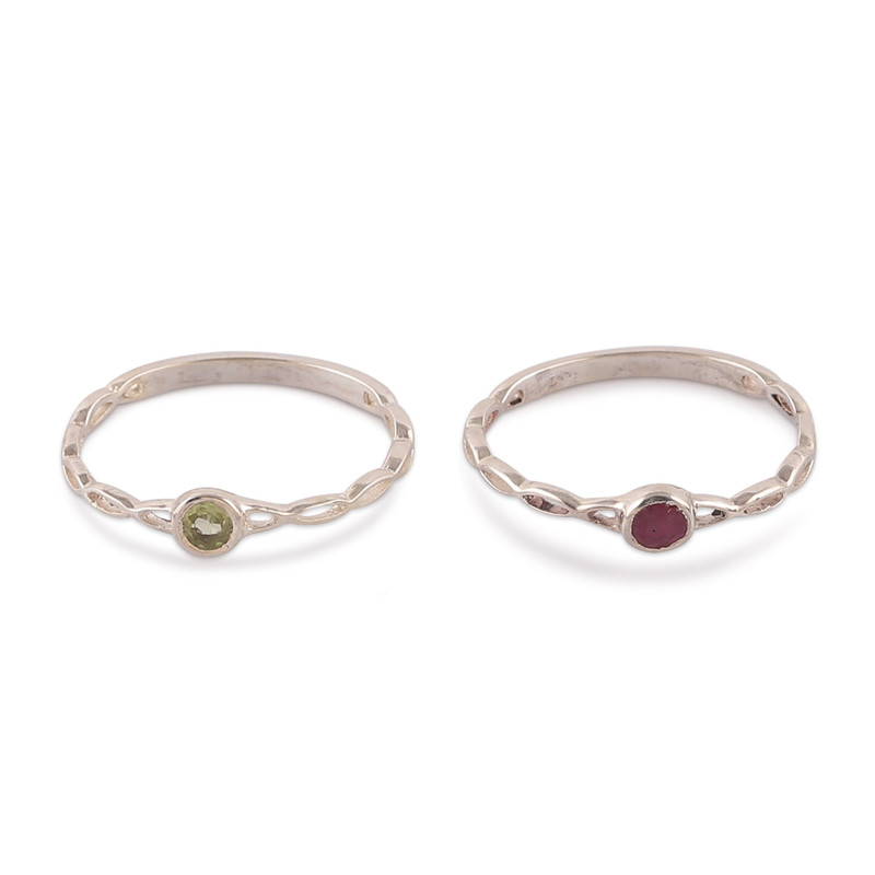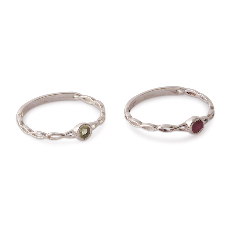 You can find our ruby and peridot stacking solitaire rings 'Dual Allure' (pair) by Bhavya Jain in jewelry categories such as Birthstone Rings, Gemstone Rings, Peridot Rings, Ruby Rings and Silver Rings. Enjoy exploring these sections for other Novica treasures.