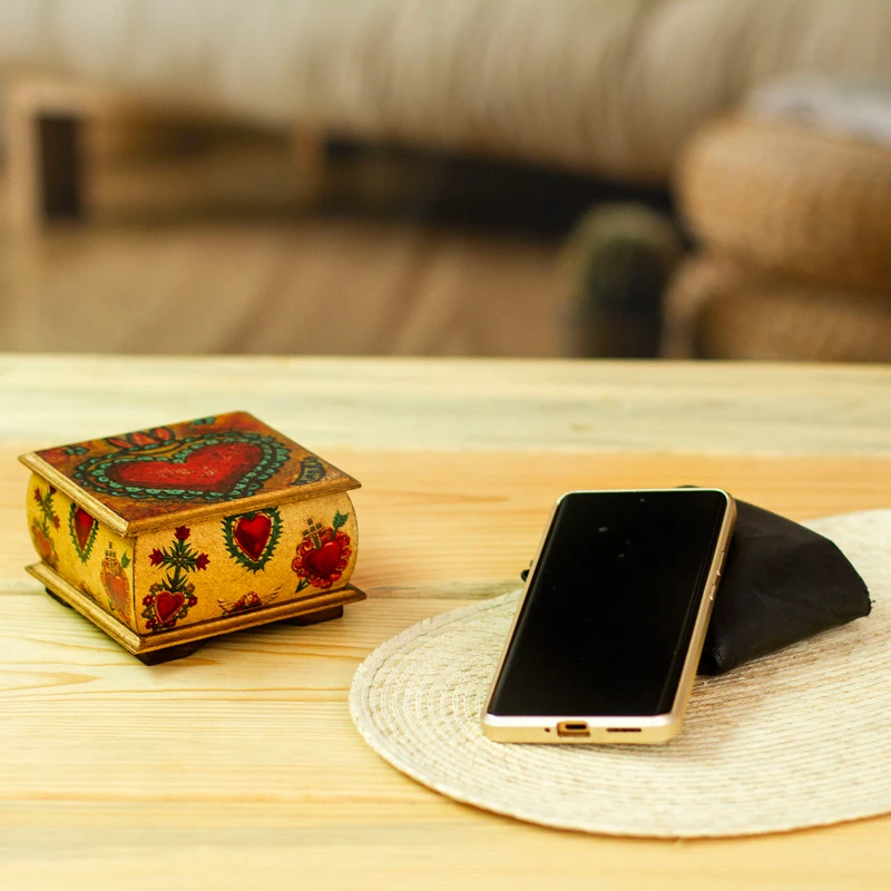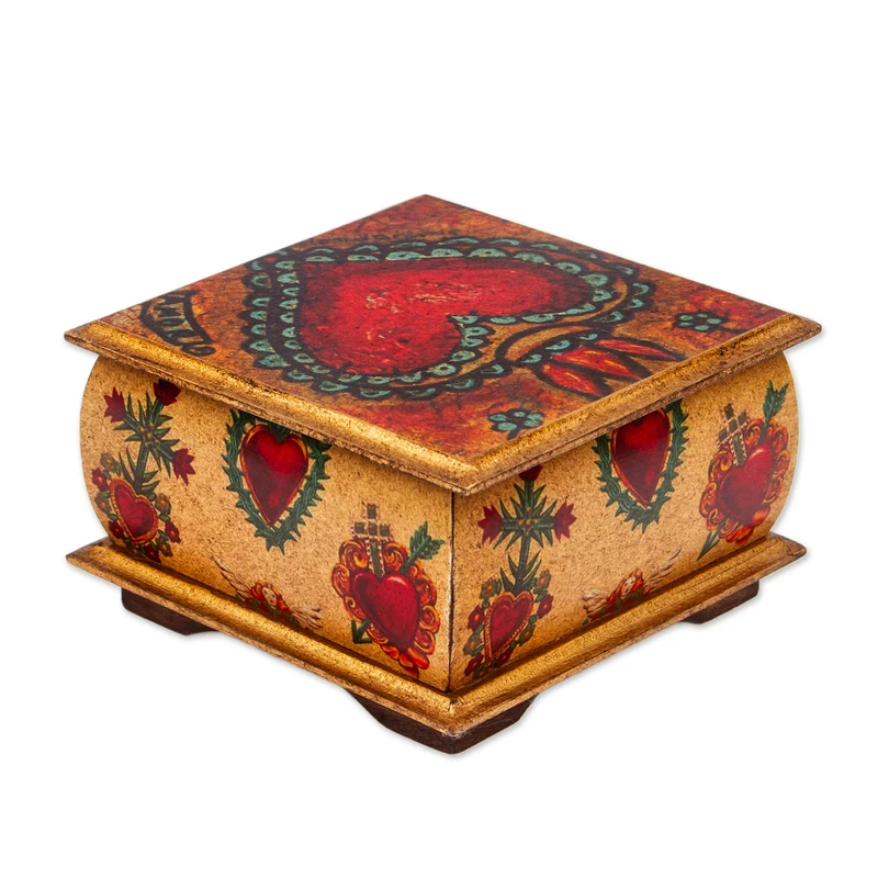 Backed by our 100% Happiness GuaranteeThis dainty decorative box from Ana Maria Gonzalez features sacred heart motifs on its sides and lid. Perfect for storing small items, the pine wood box is decorated using decoupage techniques.