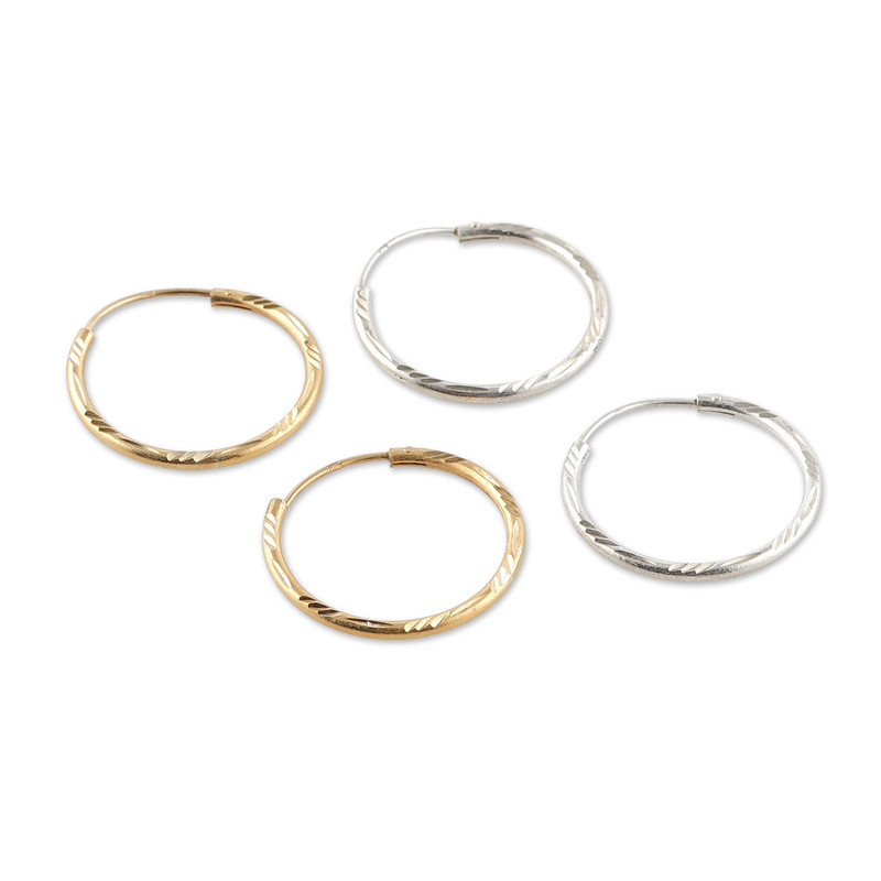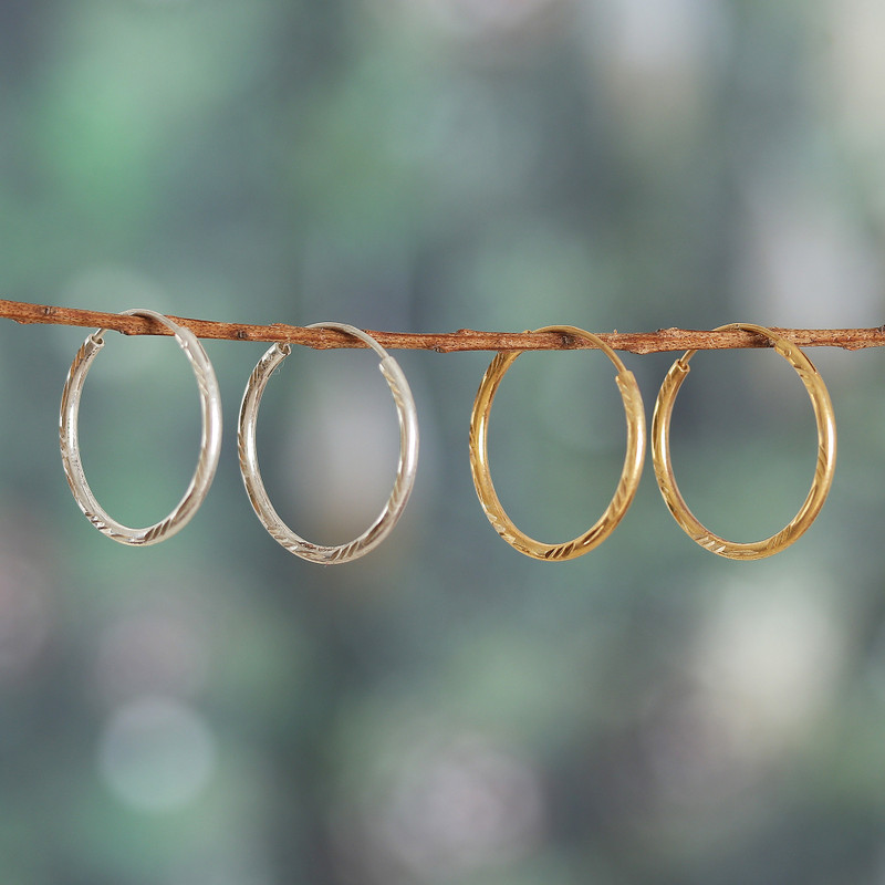 You can find our gold-plated and sterling silver hoop earrings 'Shimmering Hoops' (set of 2) by Bhavya Jain in jewelry categories such as Bridal Earrings, Traditional Earrings, No Stone Earrings, Silver Earrings and Sterling Silver Earrings. Enjoy exploring these sections for other Novica treasures.
