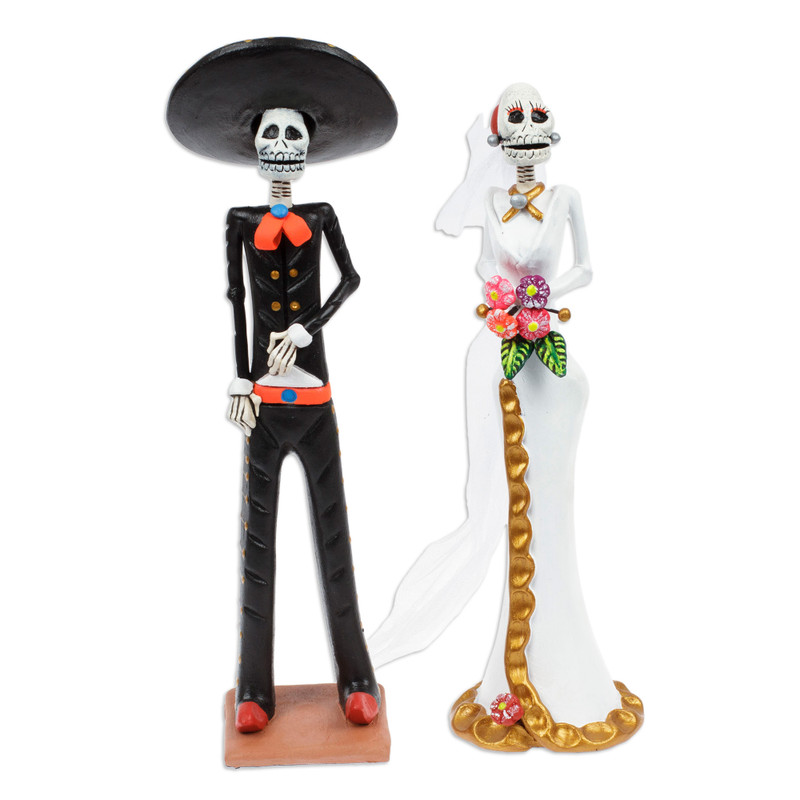 Backed by our 100% Happiness GuaranteeThis season brings a romantic aura with the festive touch of the Day of the Dead celebrations, all portrayed by a skeleton couple crafted by Jorge Escamilla. The Mexican artisan draws inspiration from regional customs to create this set of two ceramic sculptures portraying a bride Catrina and her groom, all wearing exquisite wedding garments crafted by hand with masterful artistry.