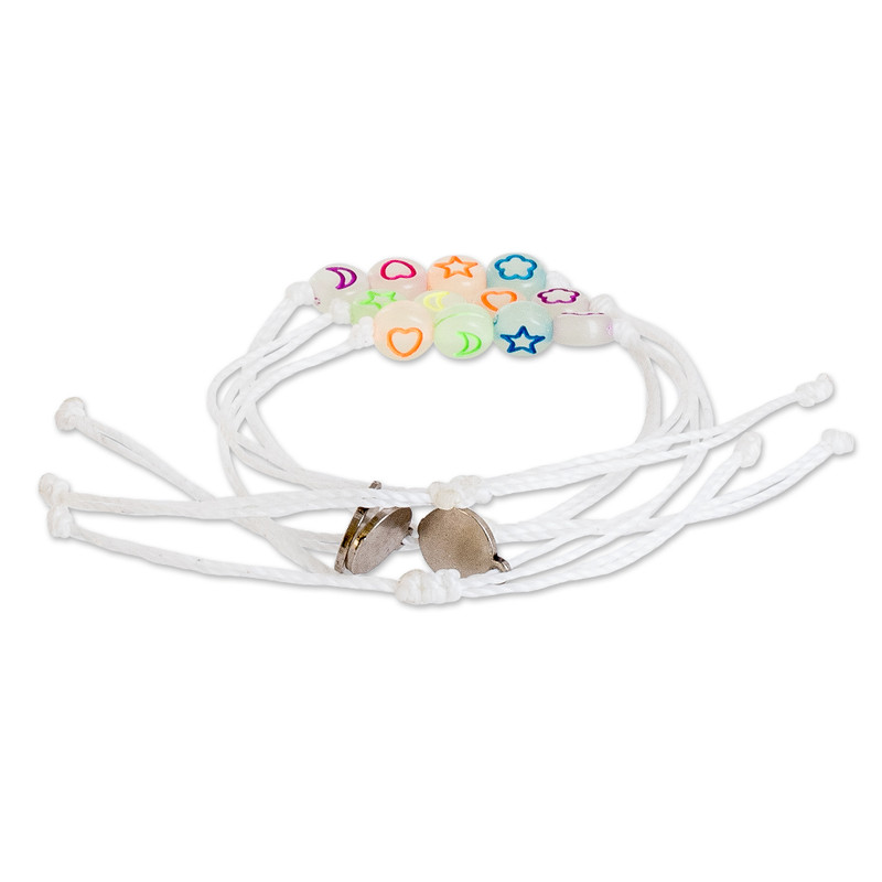 Guatemala's Victoria Zurdo draws inspiration from current trends to create a cute set of three pendant bracelets in honor of friendship. Using waxed polyester cords, the artisan crafts the accessories with plastic beads in vibrant colors, each featuring a unique pattern and arrangement. With little stars, hearts, flowers and moons adding a sweet touch, the designs also come with sliding knots and Zamac charms.