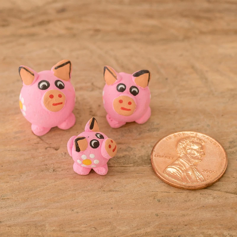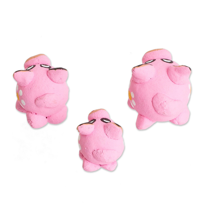Backed by our 100% Happiness GuaranteeTo make this cute set of three pink pig-shaped figurines, Jose Arriola works ceramic at high temperatures on wood and charcoal-fueled grills, a method used in his native Guatemala since the ancient times of the Mayans. This hand-painted sweet pig family has floral motifs and is a perfect decoration to bring some warmth to your spaces.