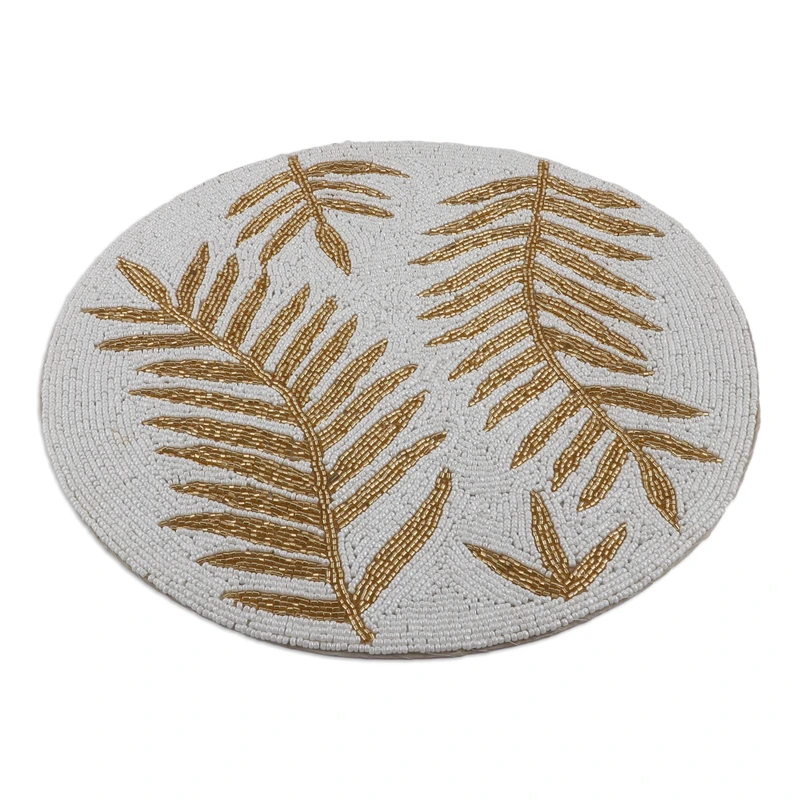Backed by our 100% Happiness GuaranteeProsperous vibes arrive at your table with a glorious creation crafted by talented Indian artisans. Arti Sharma presents this gorgeous omen of abundance and joy made from white and golden glass beads, forming elegant leaves. This set of four placemats is also equipped with a card paper lining for convenient use.