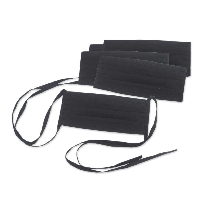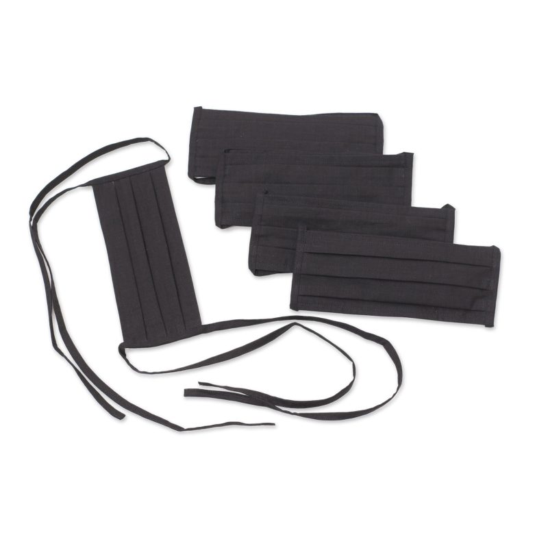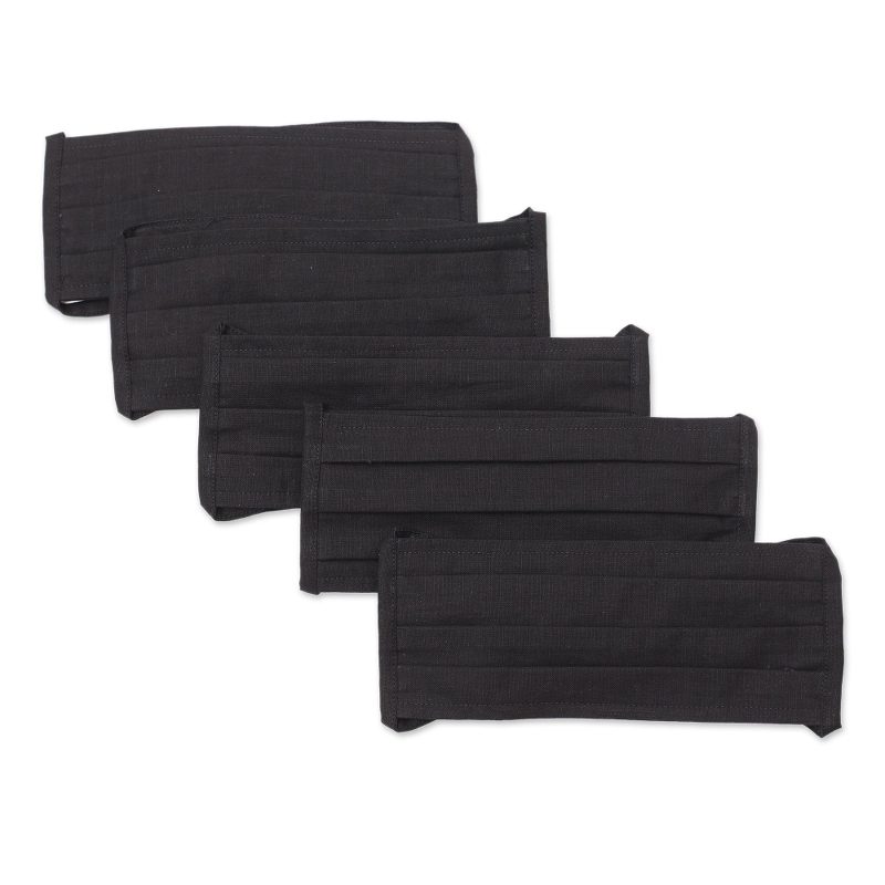 Novica artisans craft this set of five black double-layer cotton face masks with three pleats for comfort. They are washable and reusable, and feature ties that allow you to adjust the fit.
