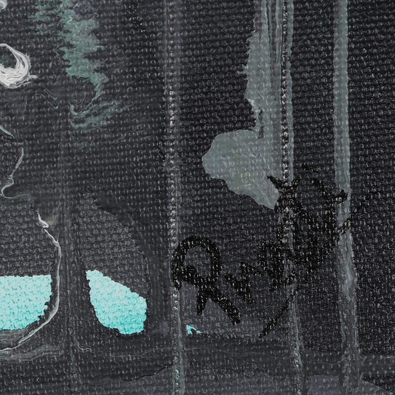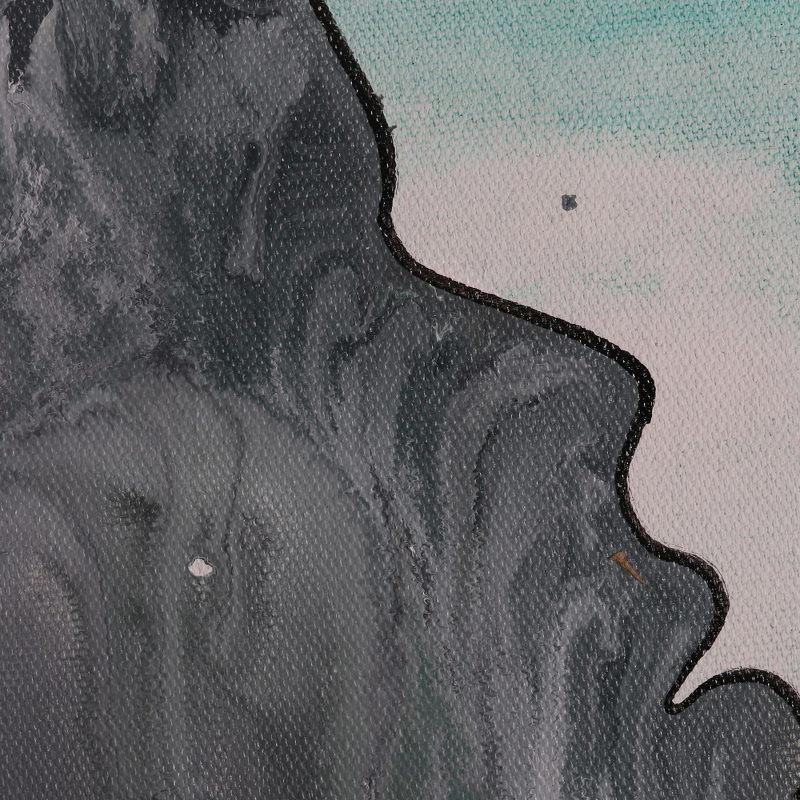 Indian artist Preeti Gupta uses the language of abstract art to depict the mind's inner turmoil. Using grey and green paint, the artist creates a fascinating marbled effect that contrast beautifully with graphic line work against a pale blue backdrop.