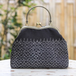 Sansanee Krasae and Achara reunite to create one of NOVICA's most luxurious selections from the Thai region. Made for the modern and glamorous woman, this curated gift set features a sublime silk evening bag by Sansanee, who adorns the piece with a traditional pattern in black hues and a polished brass handle. Achara complements the accessory with a superb sterling silver cuff bracelet, whose combination of polished and oxidized finishes enriches the engraved elephant detail on the front, a symbol of wisdom and luck.
