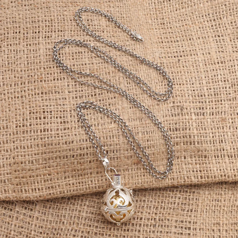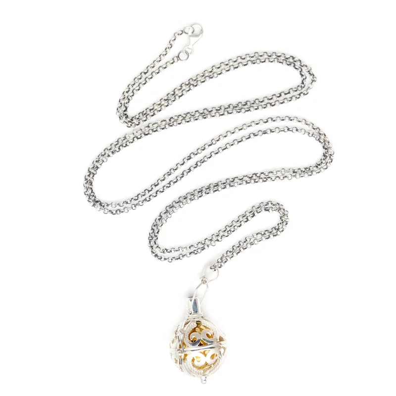 Also called "angel necklaces" and "harmony balls," Such necklaces are often worn by pregnant women in Bali and also in Mexico. The chain lets the pendant reach to the belly and the delicate sounds are thought to soothe the mother and the baby she is carrying. Some believe it summons a guardian angel, thus making it a symbol of loving protection.