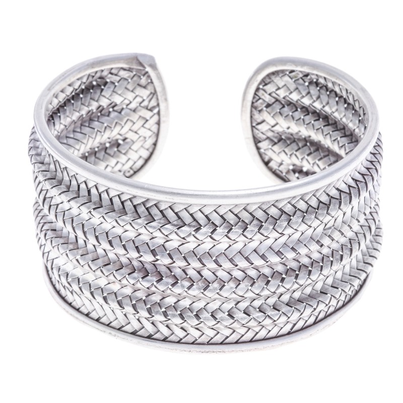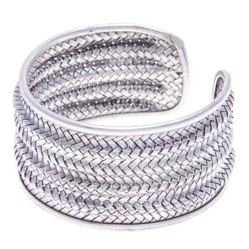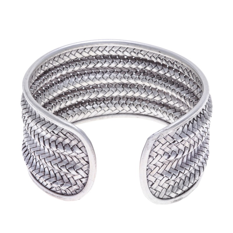 Backed by our 100% Happiness GuaranteeA basketweave pattern captures the unique luxury of the Thai lands. Pakaon Sojintarit's silver cuff bracelet is crafted by local artisans who draw inspiration from their heritage to create intricate motifs around the accessory. With an elegant structure polished for a lustrous look, the piece is also perfect to complement several styles.