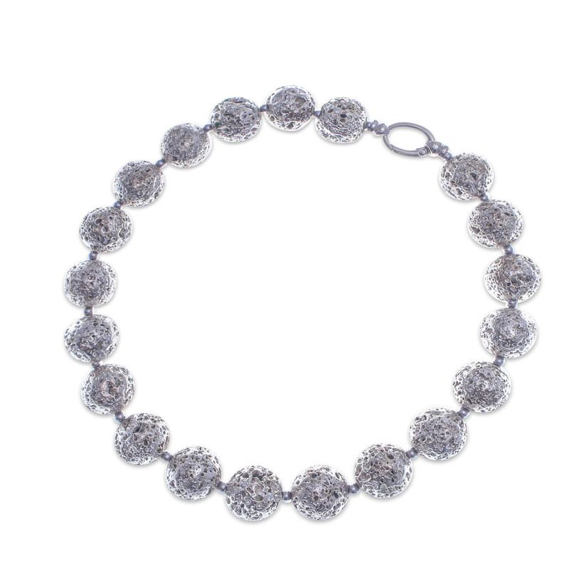 You can find our lava stone and hematite beaded necklace 'Blazing Silver' by Matta in jewelry categories such as Modern Necklaces, Gemstone Necklaces, Hematite Necklaces, Bead Necklaces and Stone Necklaces. Enjoy exploring these sections for other Novica treasures.