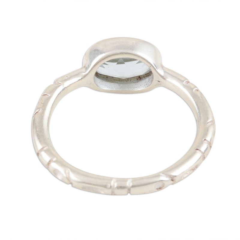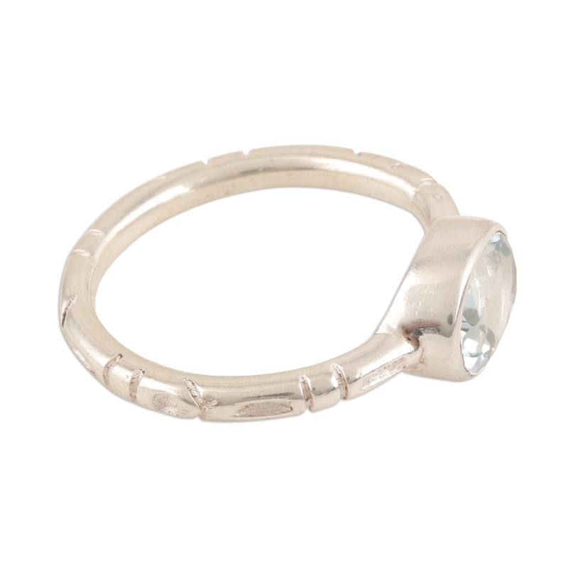 Backed by our 100% Happiness GuaranteeAn oval-cut eye of blue topaz captures you in its lucid gaze in this pretty ring from India's Neetu Barathi. Artisans set the gem on a uniquely styled sterling silver band that has been textured with dimples and grooved lines.