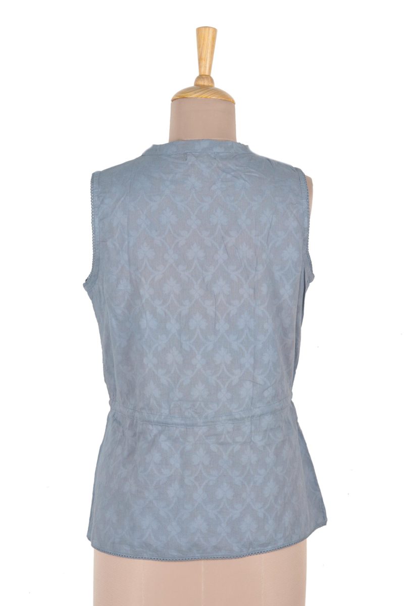 You can find our embroidered sleeveless cotton blouse 'Delhi Spring in Wedgwood' by Shashi Sehgal in clothing categories such as Embellished Tops, Floral Tops, Travel Friendly Tops, Cotton Tops and Blouses Tops. Enjoy exploring these sections for other Novica treasures.