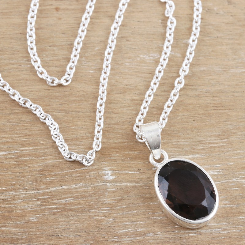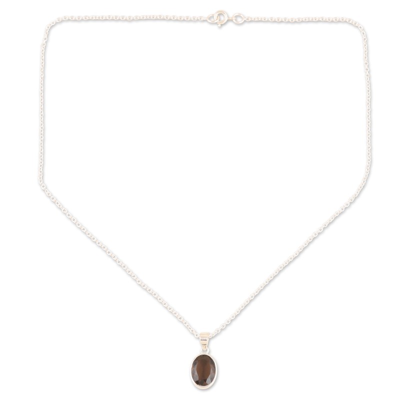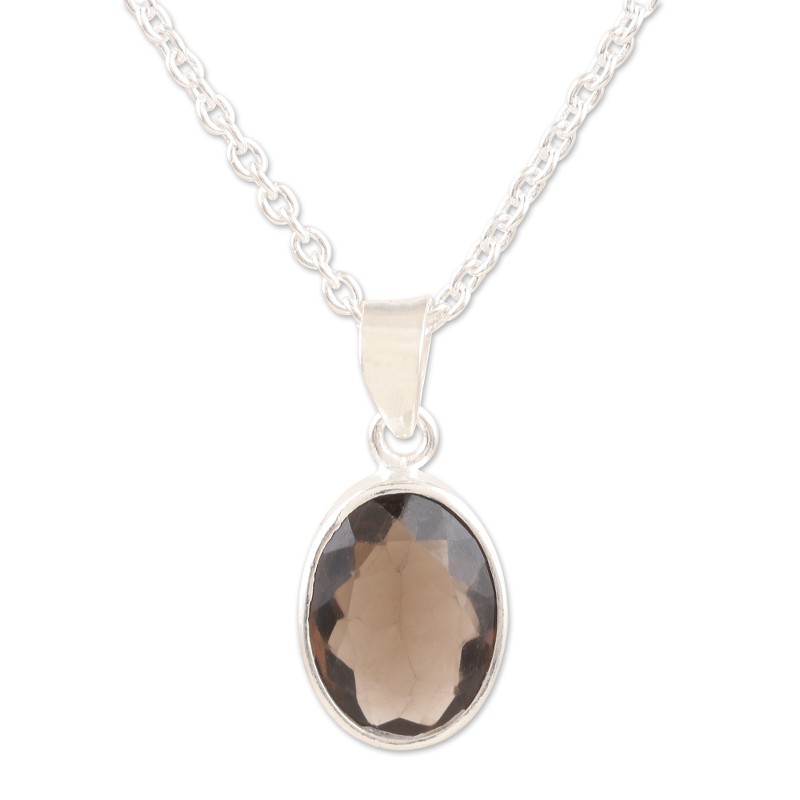 Backed by our 100% Happiness GuaranteeKnown as a grounding stone, the smoky quartz on Ajay Patil's pendant necklace glows with a soft grey light. Indian artisans use sterling silver to hand craft the necklace, centering the pendant with a faceted smoky quartz in a shimmering bezel setting.