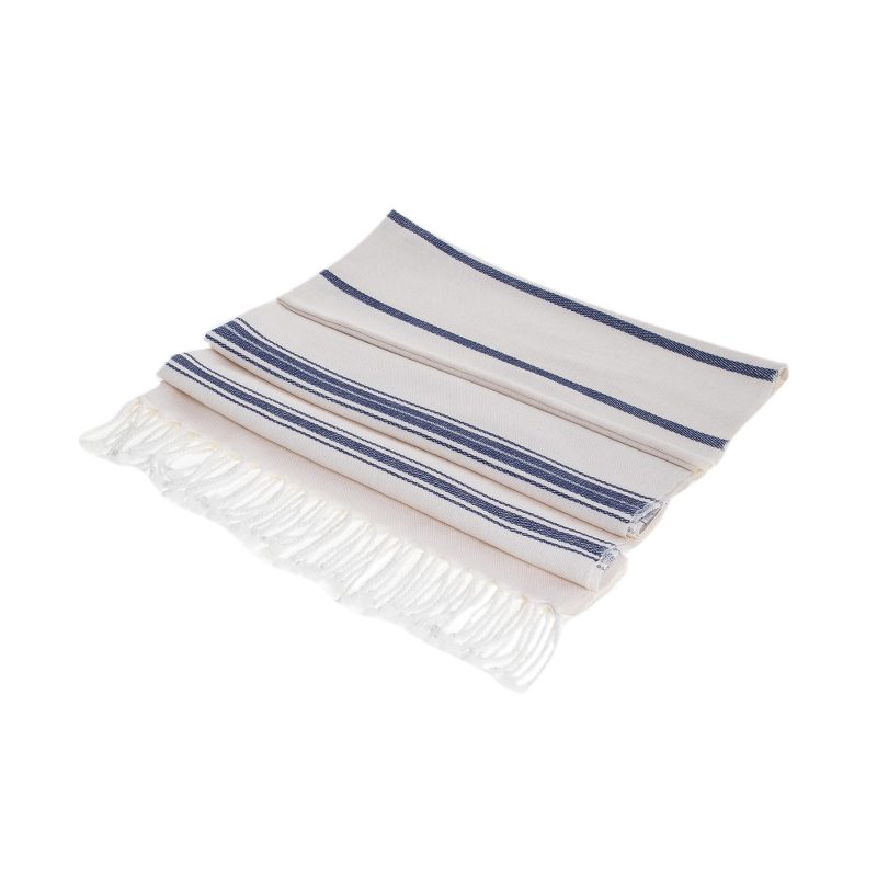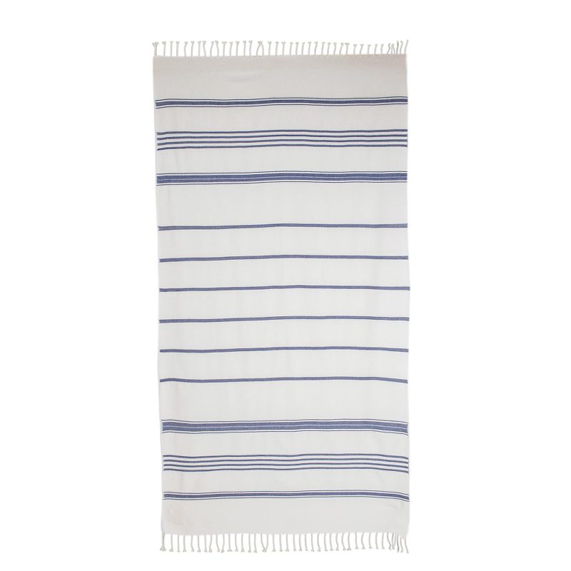 Backed by our 100% Happiness GuaranteePerfect for a relaxing day by the beach, this towel is designed by Eladio Chiroy in Guatemala. He works with cotton, weaving this beach towel by hand on the traditional telar de pie, or floor loom. The towel features a body of snow white with indigo stripes decorating its length. Fringes at either end complete this summery accessory.