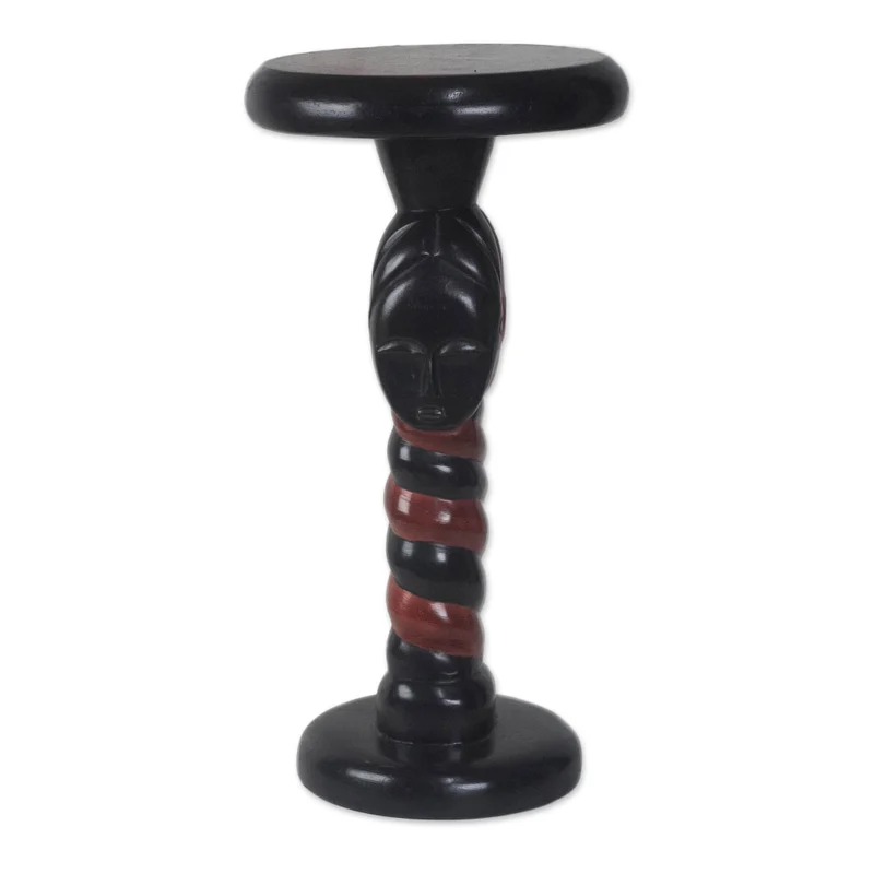Hand-carved from cedar wood with a spiral pattern, this accent table from Ghana is designed by Raphat Asigbey. Just below the top of the table, the image of two faces--one black, and the other brown--are carved into the wood. Asigbey names this table Fafali, meaning "peace" in Ewe.
