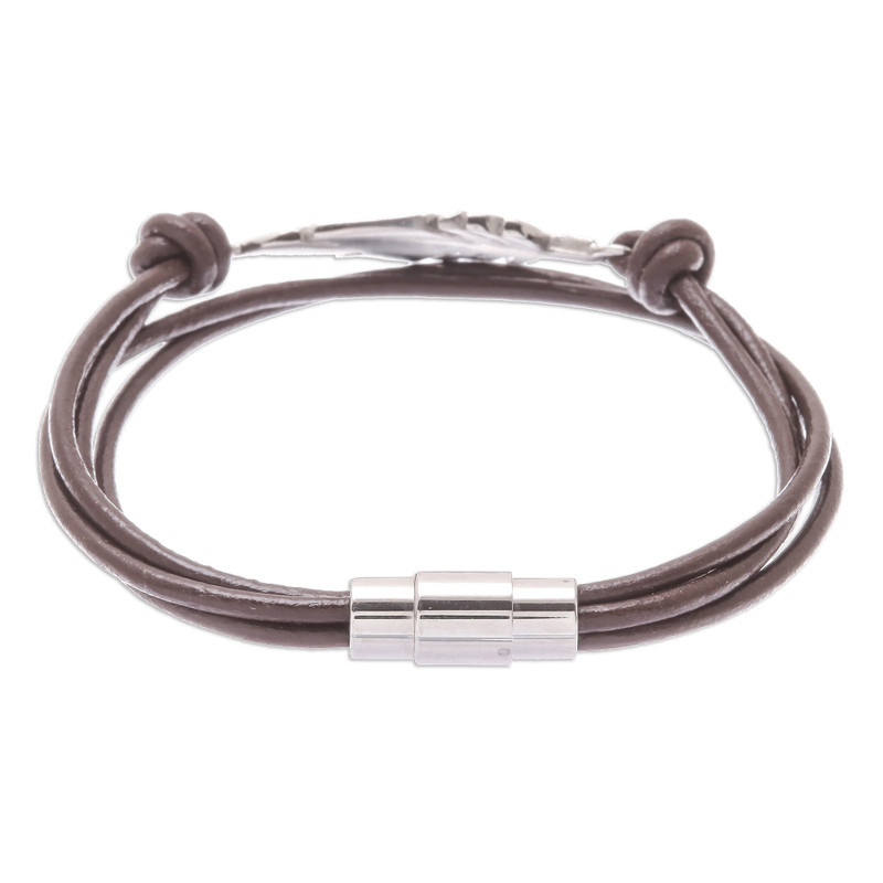Backed by our 100% Happiness GuaranteeCircling the wrist with cord of brown leather, this bracelet culminates in a stunning feather pendant crafted from stainless steel. Thai artisan Passaramon designs this bracelet, which closes with a magnetic clasp.