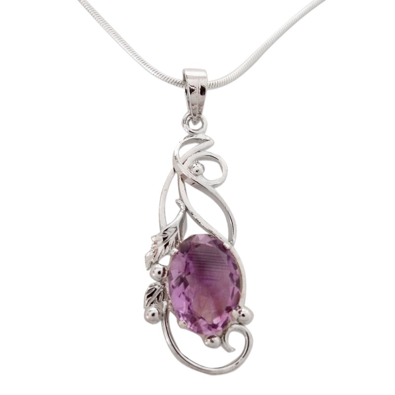 A magnificent, large pendant . The amethyst here is a superbly colorful and bright stone that dazzles; it sits on a playfully meandering rivulet of silver that does not distract from the stone.