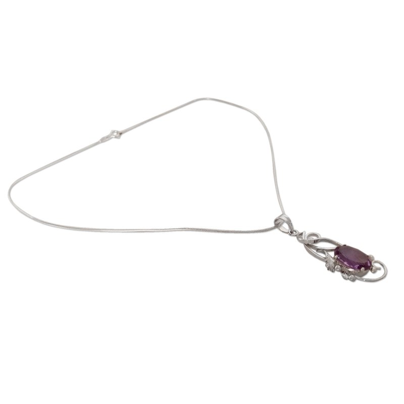 Embraced by argent tendrils, a sparkling 5-carat amethyst evokes fragrant lilacs. Alok Jain presents a necklace of eternal beauty, inspired by India's contemporary jewelry art.