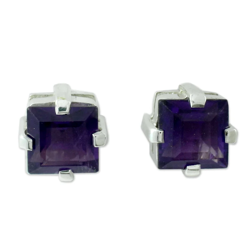 Transformed into delicate earrings, amethyst radiates a lilac charm. Alok Jain presents sterling silver studs that total 4 sparkling carats.