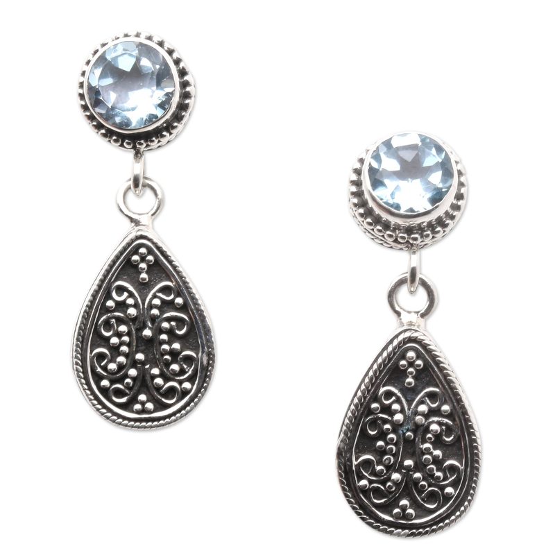 You can find our blue topaz dangle earrings 'Mystic Leaves in Blue' by Kadek Wijanegara in jewelry categories such as Birthstone Earrings, Gemstone Earrings, Blue Topaz Earrings, Silver Earrings and Sterling Silver Earrings. Enjoy exploring these sections for other Novica treasures.