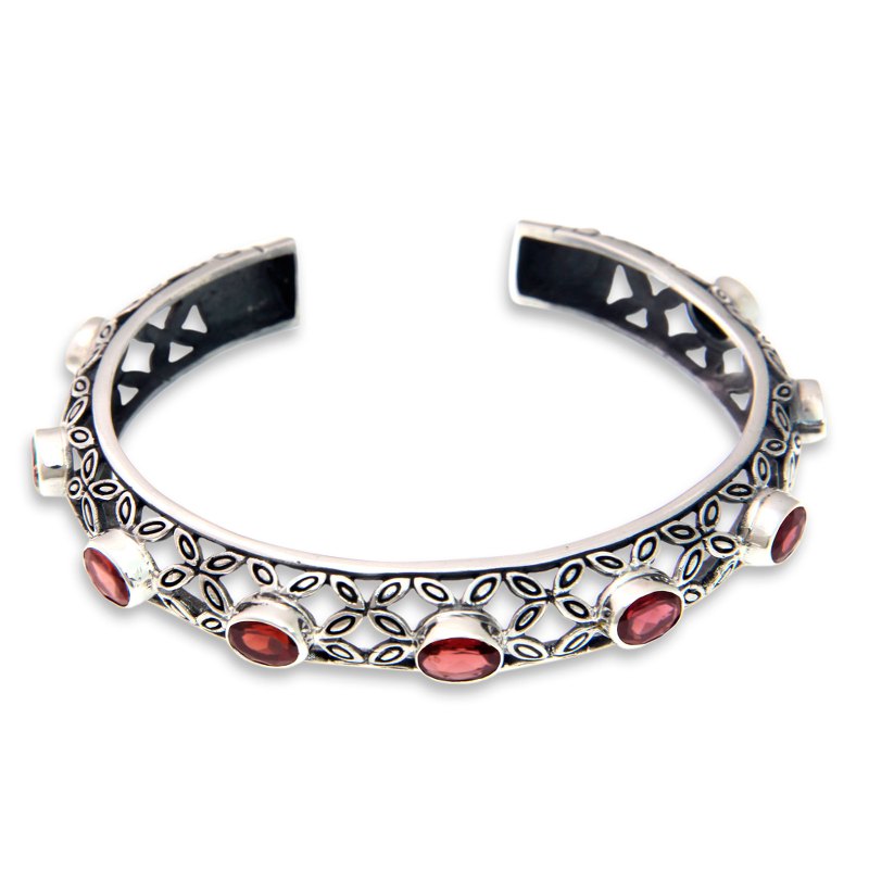 You can find our garnet cuff bracelet 'Java Kawung' by Komang Suastra in jewelry categories such as Birthstone Bracelets, Garnet Bracelets, Silver Bracelets, Sterling Silver Bracelets and Cuff Bracelets. Enjoy exploring these sections for other Novica treasures.