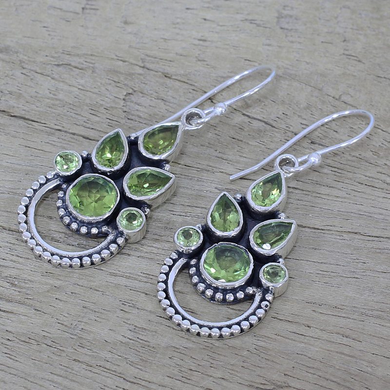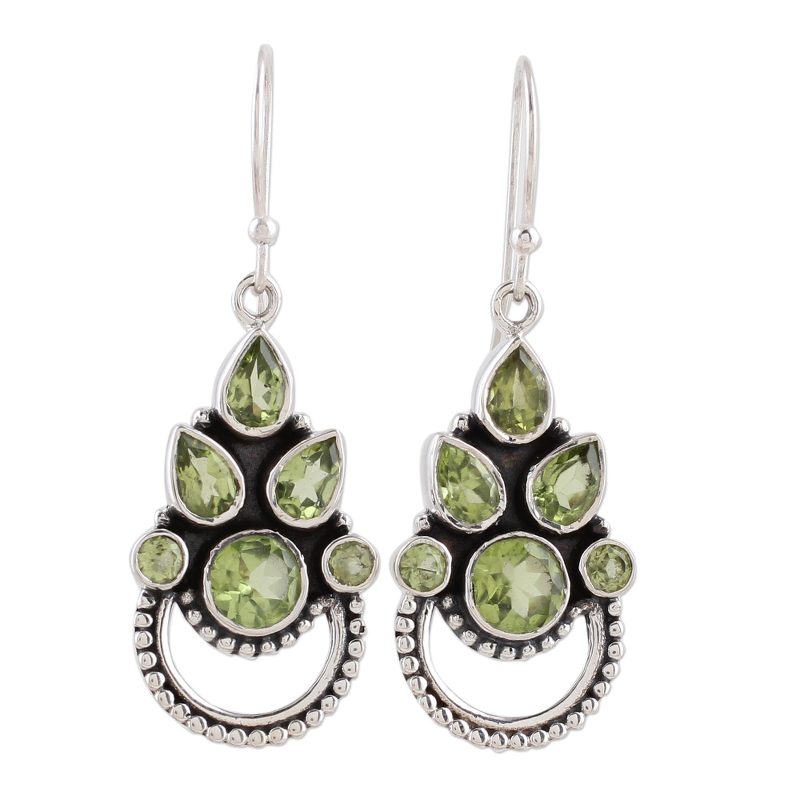 With a passion for her country's jewelry, Neeru Goel presents an opulent pair of dangle earrings with the traditional glam of India. Crafted of sterling silver with draping rope and dot motifs, the pair is set with more than five carats of sparkling green peridot stones.