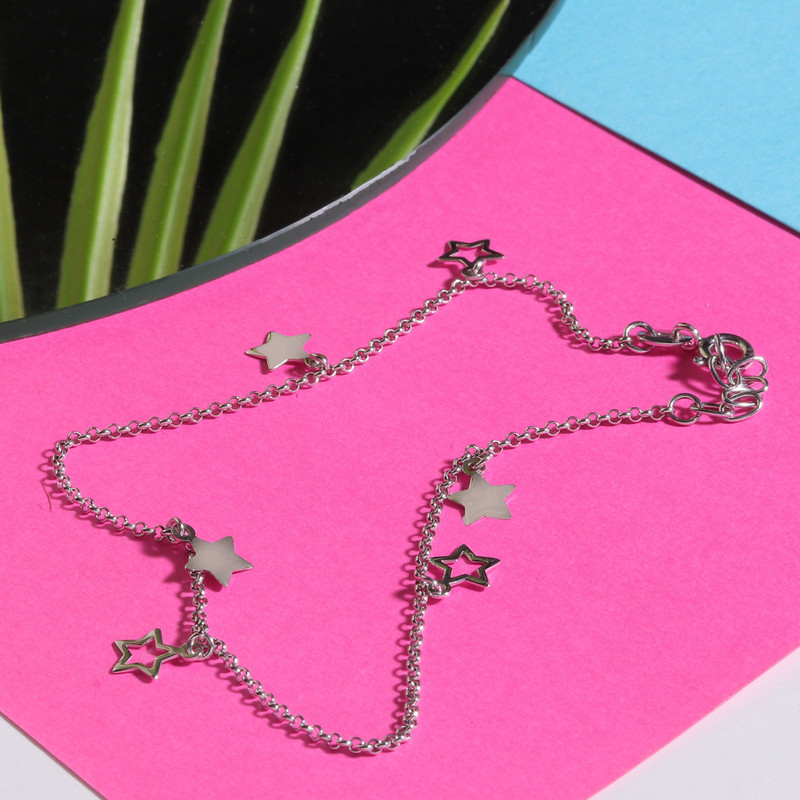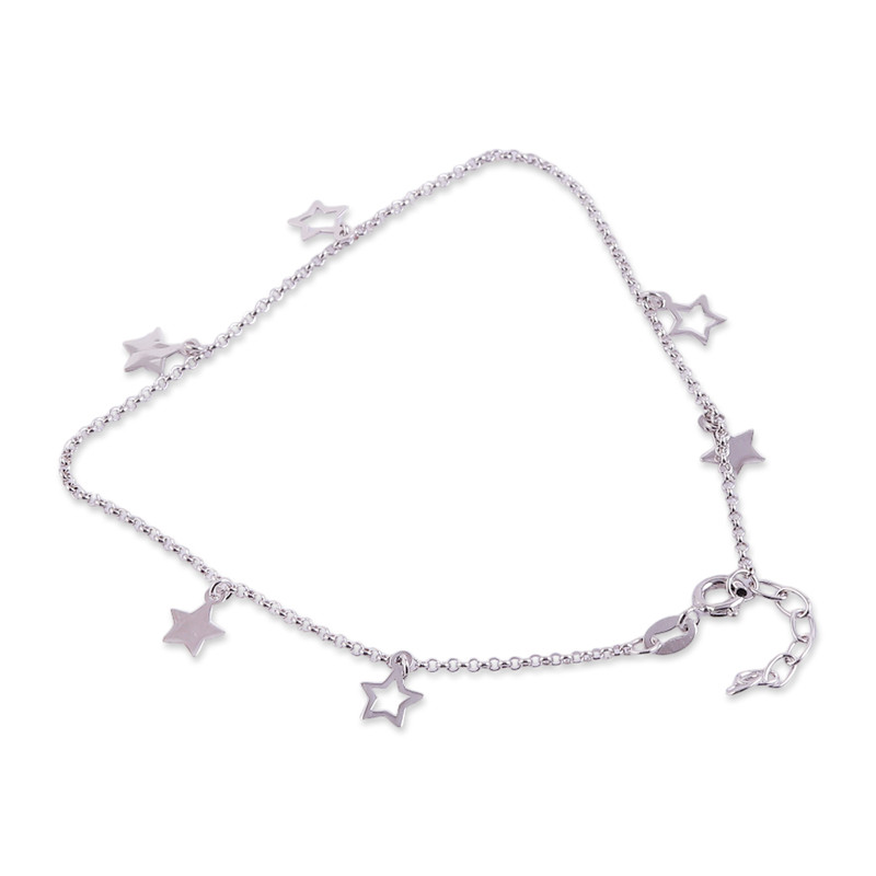 Adorned with hollow and solid star charms, this striking sterling silver creation from India's Hema infuses your look with movement and grace. The flowing design creates mesmerizing patterns of reflection that make your ankle the focal point of every ensemble.
