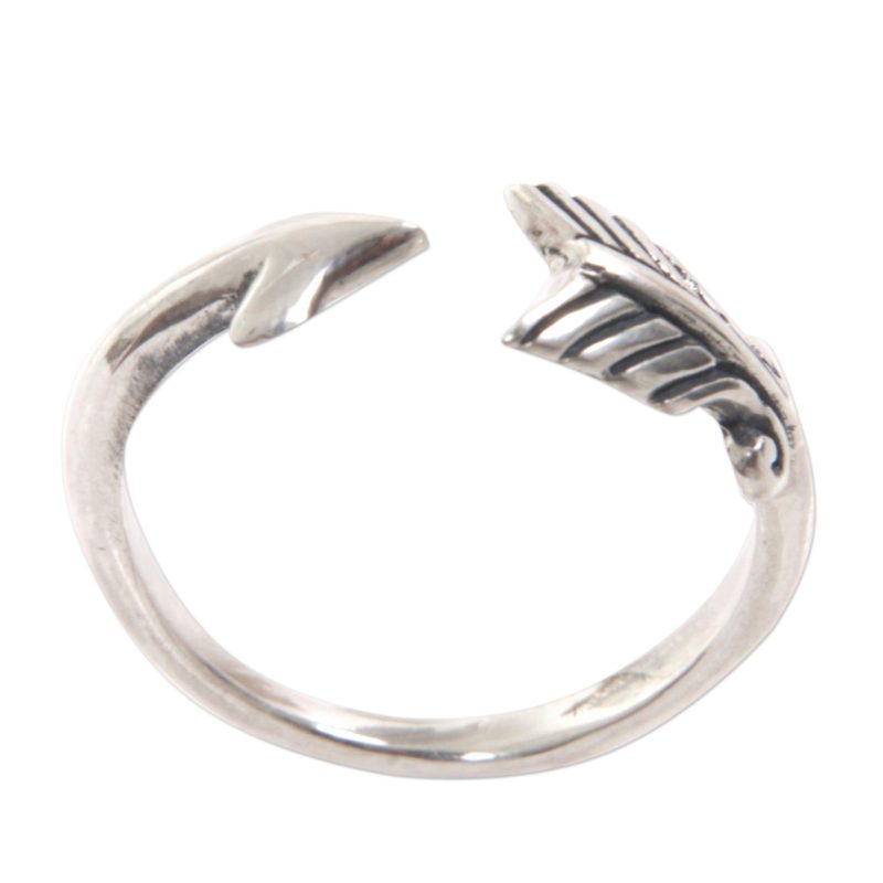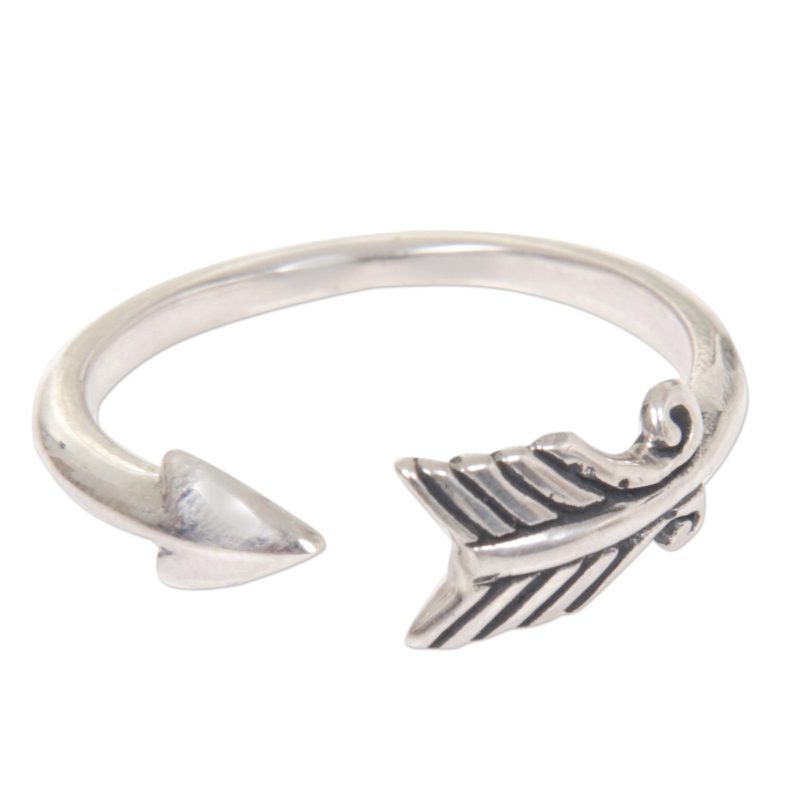 Handmade by Indonesian artist Made Sri, this sterling silver wrap ring is simple but elegant. The ring features an open circle band engraved to resemble an arrow and has a high finish polish with oxidized details. This ring is perfect for everyday wear or for a night out.