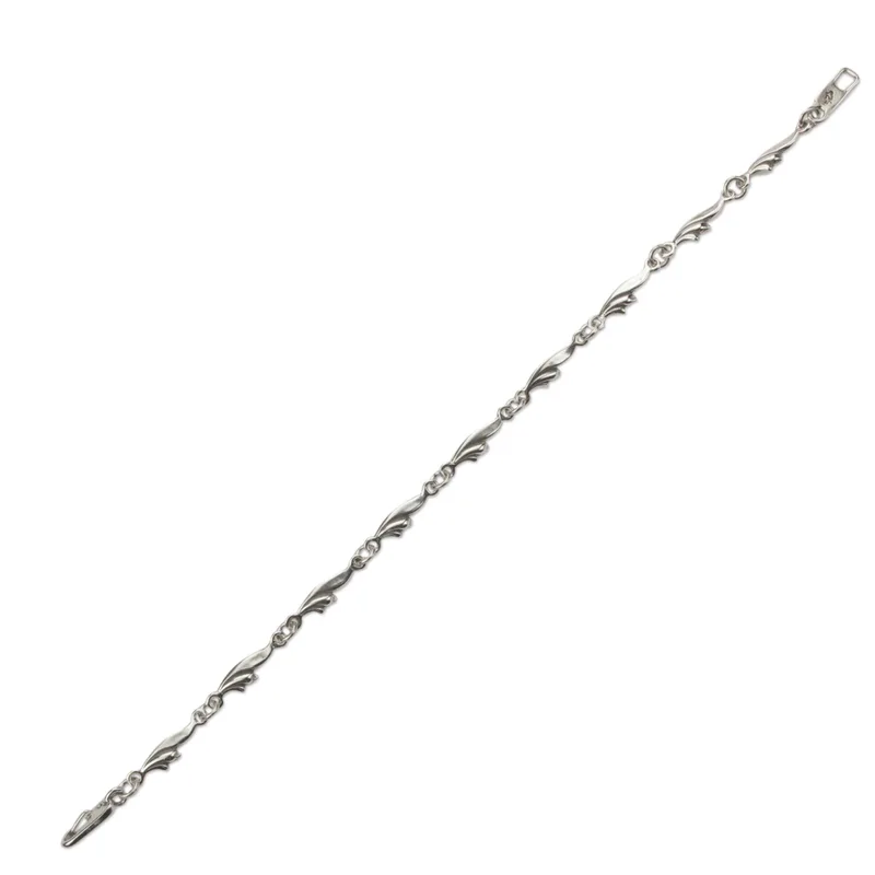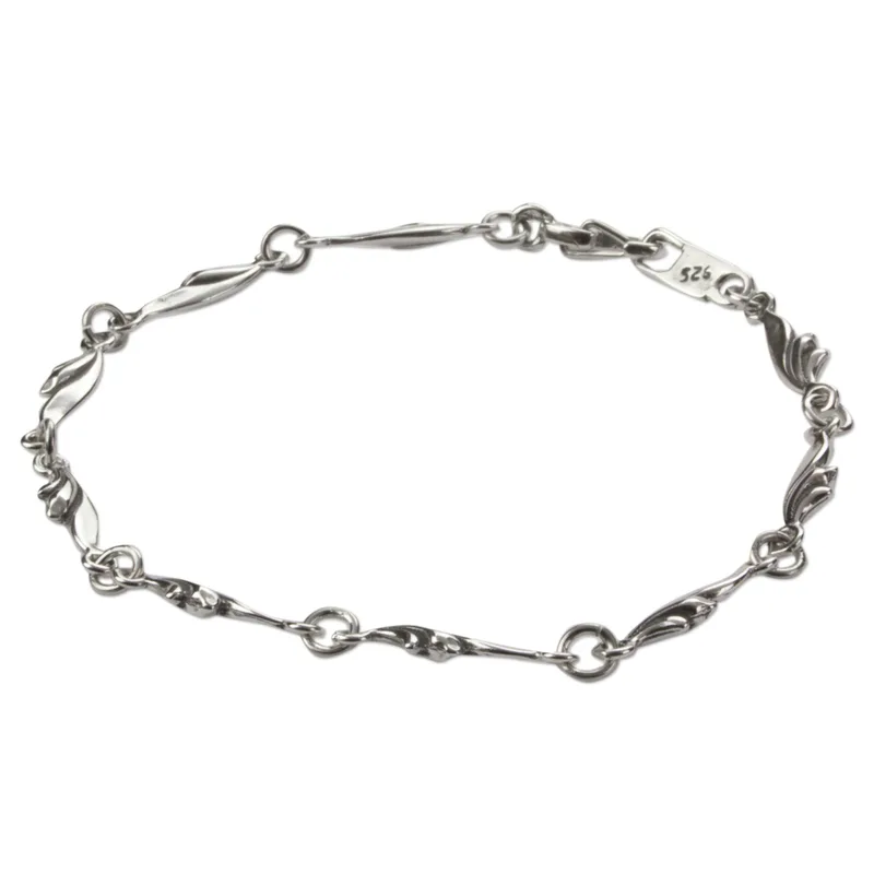 Traditional Mexican jewelry from bygone centuries inspires Gianluca Anzani's nostalgic designs. Working in sterling silver, he crafts a beautiful bracelet comprised of diminutive leaves that swirl seductively around the wrist.