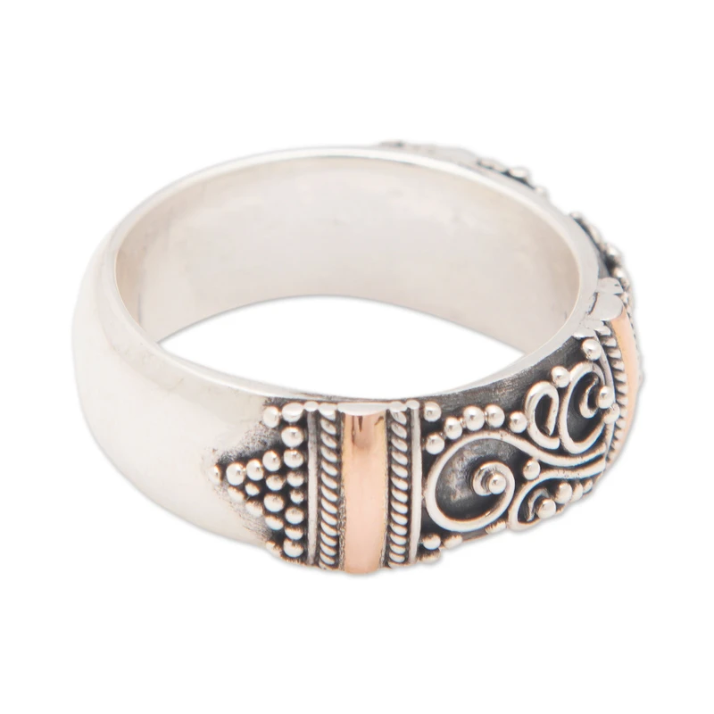 You can find our gold-accented band ring 'Precious Wish' by Komang Wijayana in jewelry categories such as Balinese Traditional Silver Rings, Bohemian Rings, No Stone Rings, Gold Rings and Gold Accent Rings. Enjoy exploring these sections for other Novica treasures.