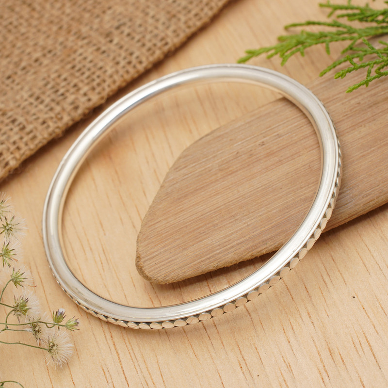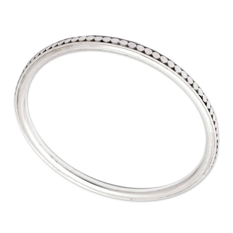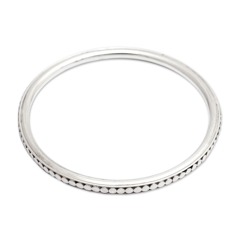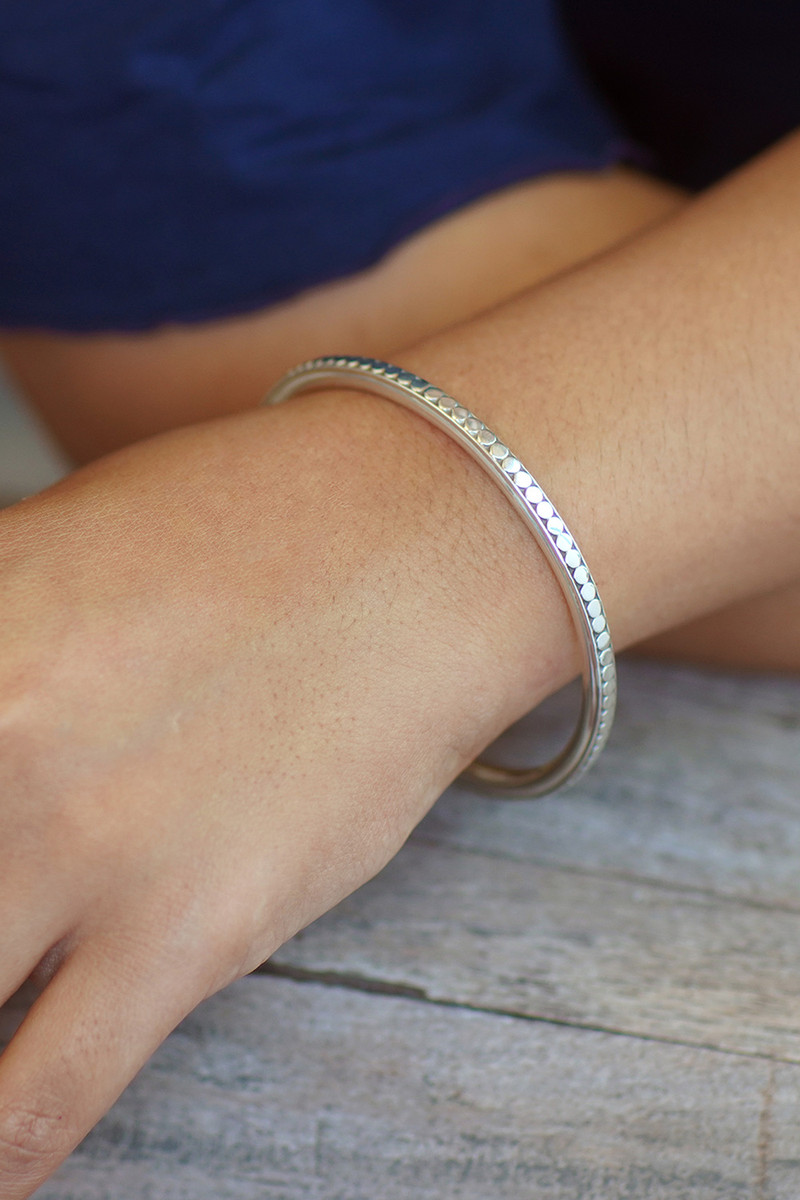 Nyoman Rena designs an elegant bangle that mirrors his flair for esthetic minimalism. The slender bracelet is crafted with sterling silver with shimmering moons marking the circumference.