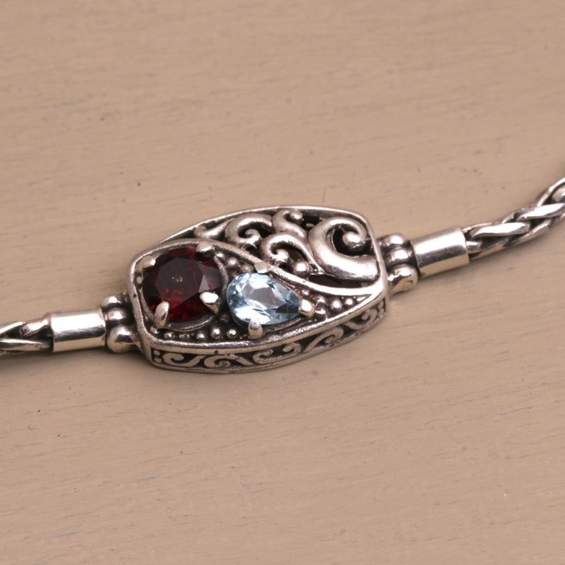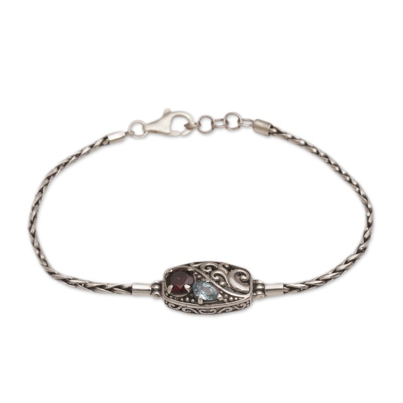You can find our garnet and blue topaz pendant bracelet 'Crashing Waves' by Diah Arini in jewelry categories such as Gemstone Bracelets, Garnet Bracelets, Sterling Silver Bracelets and Pendant Bracelets. Enjoy exploring these sections for other Novica treasures.