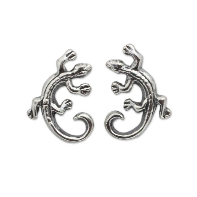 Backed by our 100% Happiness GuaranteeTwo petite chameleons on the move are actually charming button earrings from Thai artisan Wadarat Supasirisuk. The artisan creates the earrings in gleaming sterling silver with a keen eye for detail.