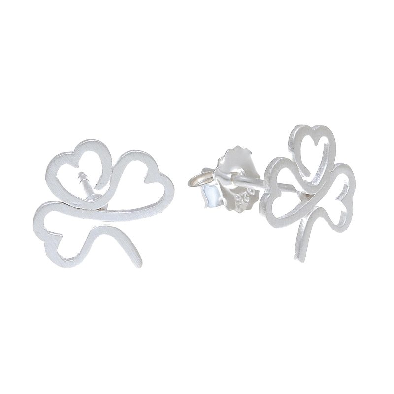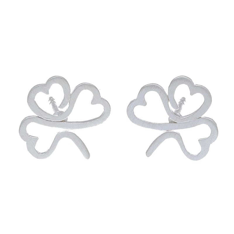 Crafted from sterling silver and given a brushed-satin finish, two three-leaf clovers with heart-shaped leaves adorn the ears with beauty. Thai artisan Jantana creates these stud earrings.