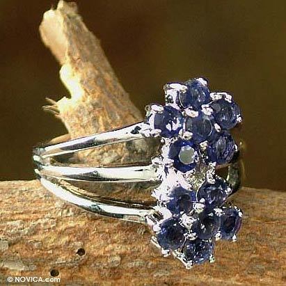 Twin iolite daisies cast a dazzling spell of feminine elegance in a ring from Shanker. The glowing gems are set on a rhodium plated sterling silver ring.