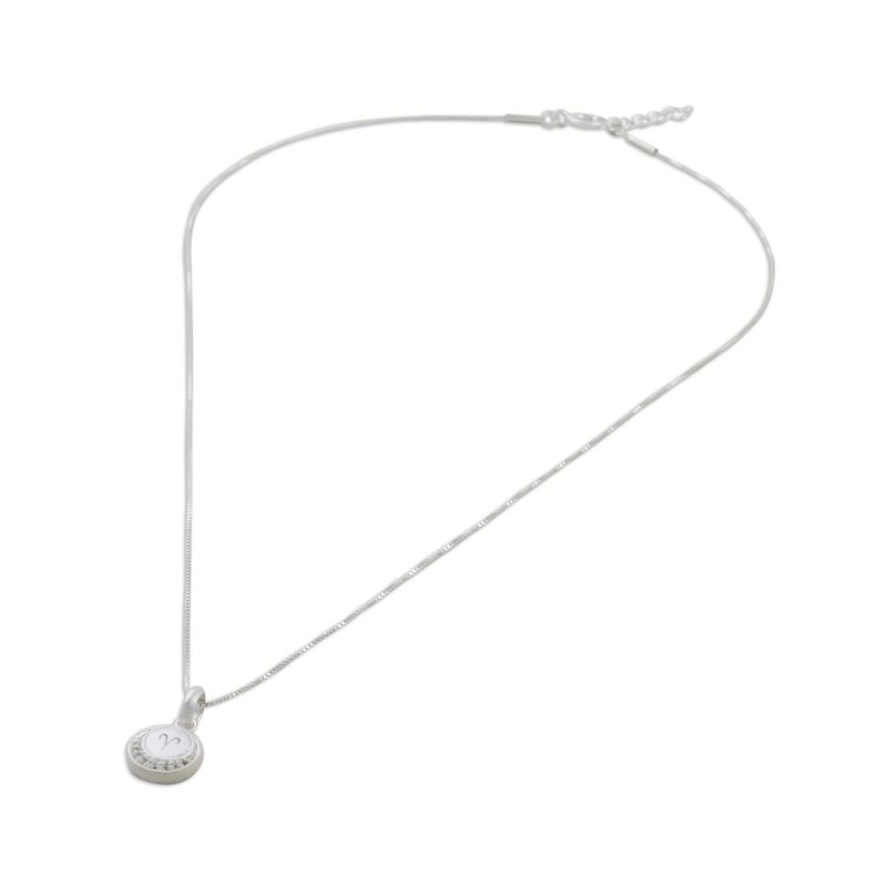 The perfect accessory for you or the Aries in your life, this sterling silver pendant necklace comes from Thailand's Sarote Lochotinunt. At the end of a box chain with a spring-ring clasp hangs a brushed-satin finish sterling silver pendant which is hand crafted using the lost wax technique; within its round contours, the symbol for the zodiac sign Aries (March 21 to April 19) is cradled by a crescent moon sprinkled with faceted cubic zirconia stones in a pave setting.