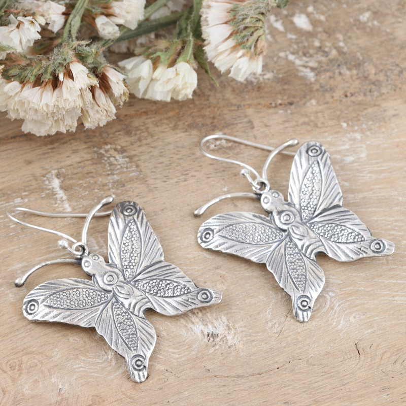 Butterflies are symbols of transformation, change and hope. Their fascinating appearance inspires many to create beautiful pieces of art. This time, India's Ajay Patil designs sterling silver dangle earrings featuring radiant butterflies in a combination finish.
