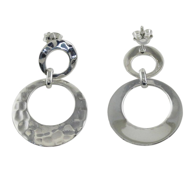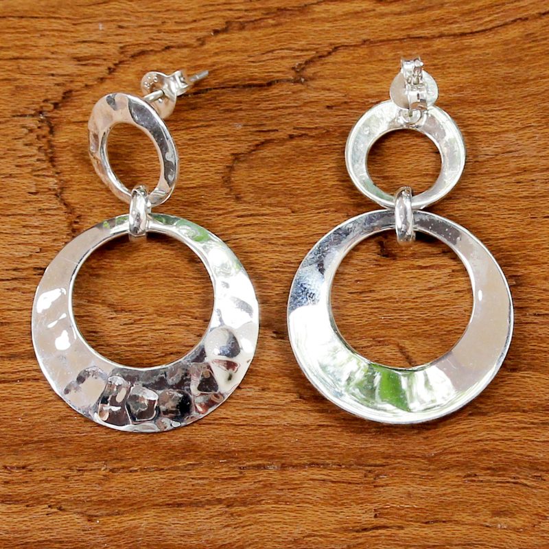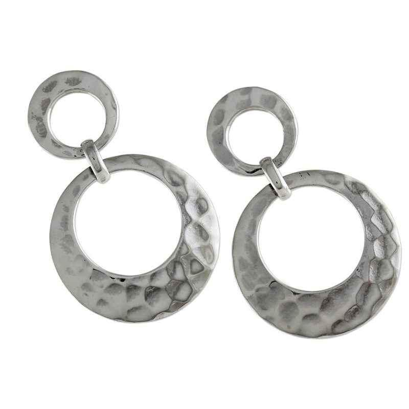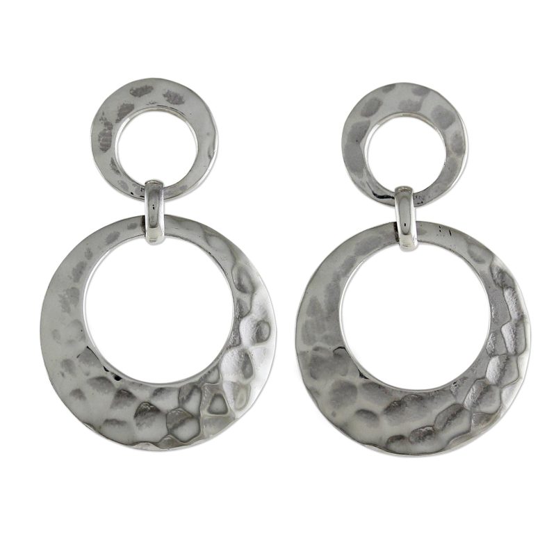 Backed by our 100% Happiness GuaranteeOpen circles with a hammered finish create a modern vibe, hanging from the ears in this pair of dangle earrings. Each earring features two circles that are linked together, crafted from sterling silver by Thai artisans. Pichaya presents these earrings, taking pride in the jewelry crafting traditions of her country.