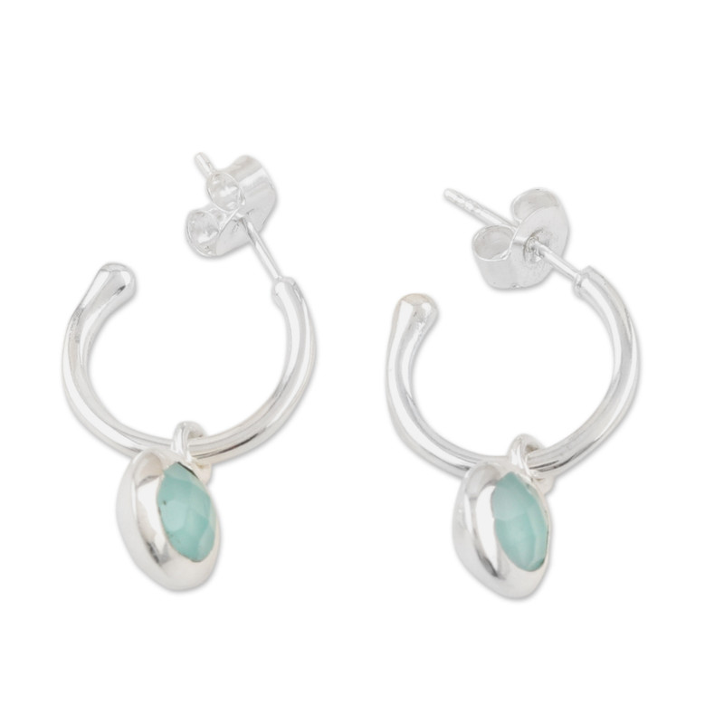 These are the perfect earring when you want something that gets noticed, but does not overpower. They go with a tee, they go with business casual, they go with everything. Beautifully made and you wont lose them in a breeze. The silver is striking and the chalcedony stone is faceted to catch all the light. Love them. Buy them-youll be glad you did.