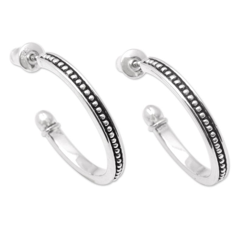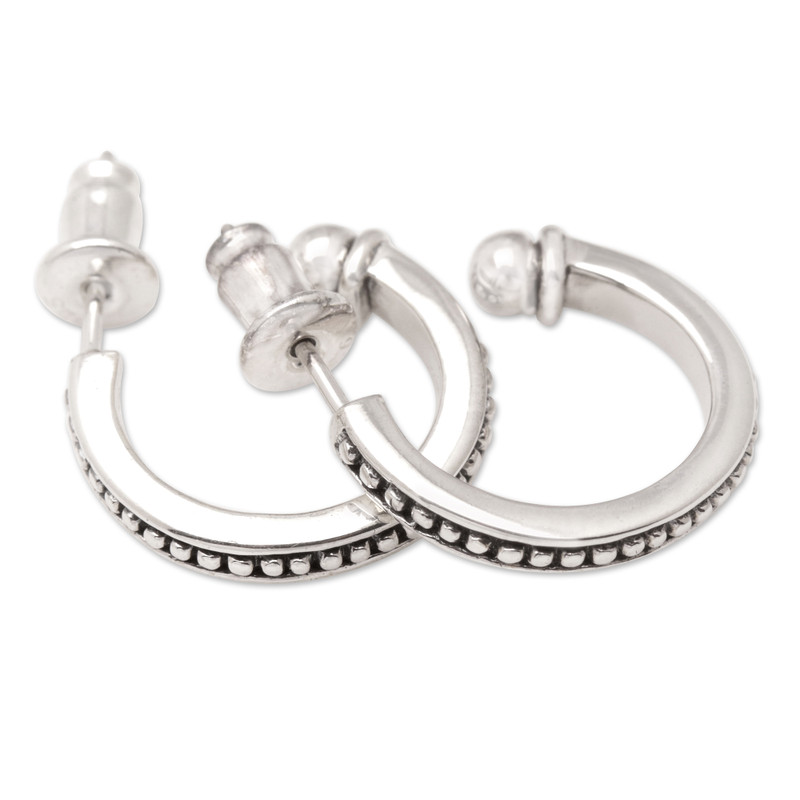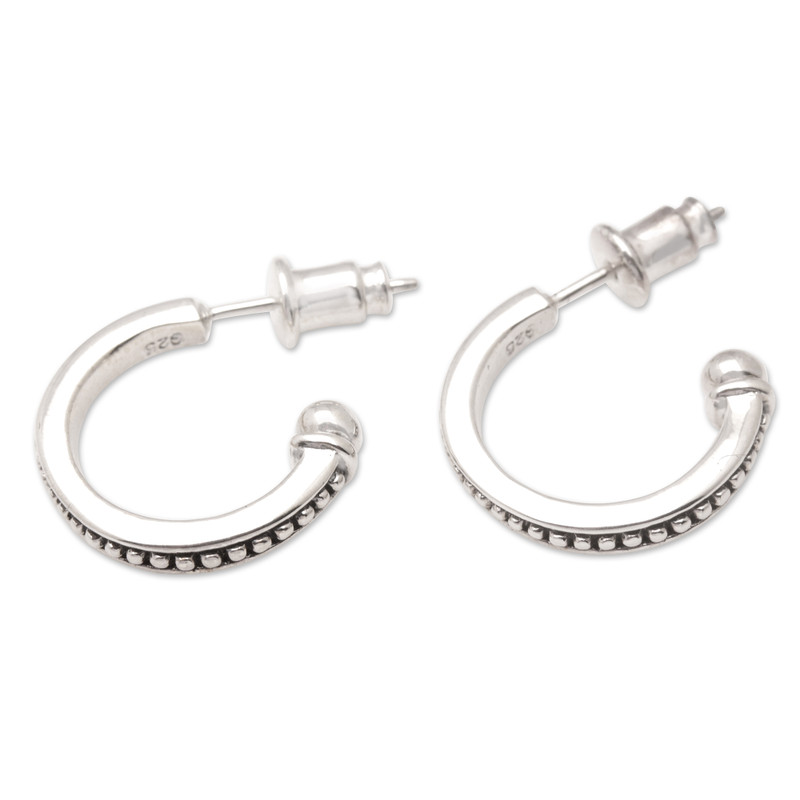 Small dots go all over curved formations that shine with a merry aura. Handcrafted by Bali's Zayd Makarim from sterling silver, these half-hoop earrings are a cute accessory that will add a lovely touch to your outfits thanks to their combination finish.