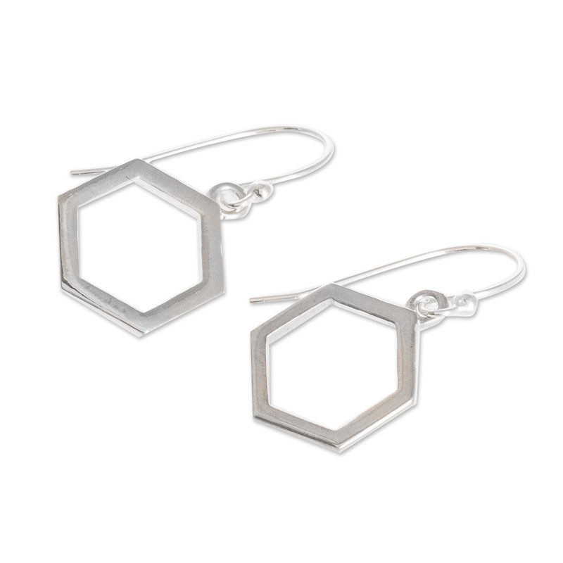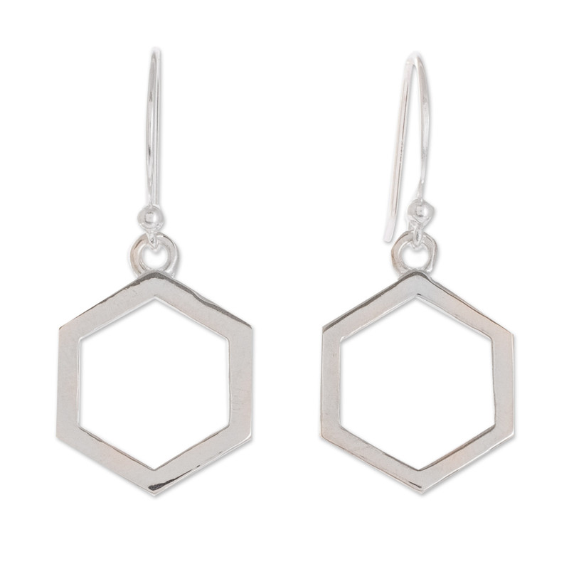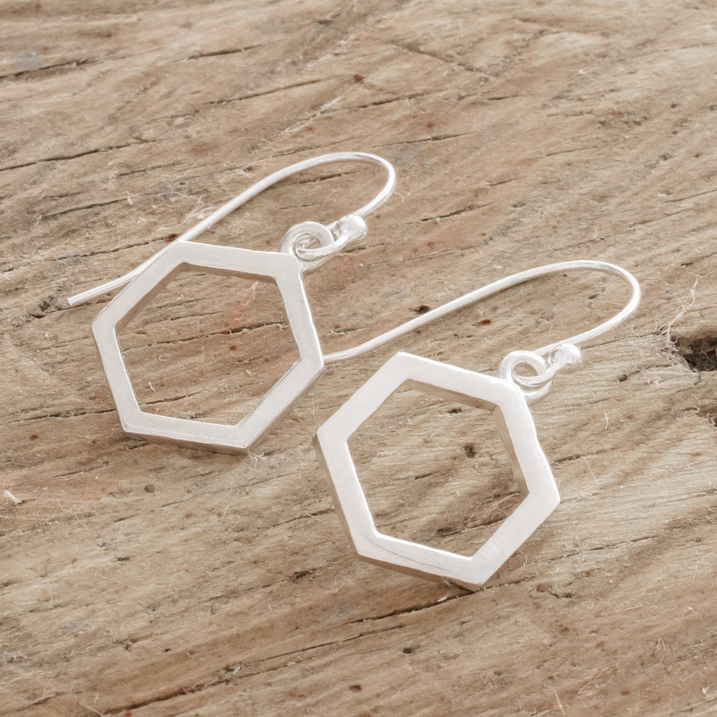 Delivery EstimateWho said geometry was boring? These modern sterling silver hexagon dangle earrings will instantly become your go-to jewelry accessory. The gleaming earrings are the creation of Costa Rican artisan Guisselle Mora, who says: "I love combining shapes, colors and materials, and creating new pieces of jewelry inspired by what surrounds me."